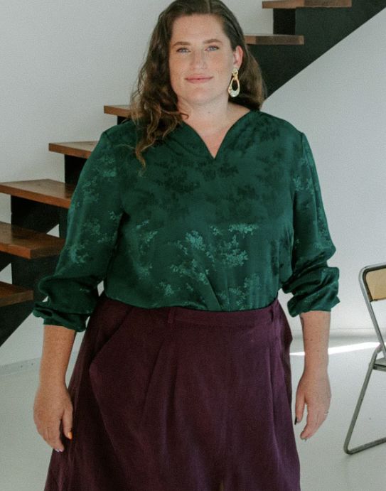 Des tissus souples et légers entre 70 et 200g/m2, qui marquent au fer à repasser pour faciliter la réalisation des encolures arrondies : de la popeline, du crêpe, un voile, de la dentelle, un jean fin ou du chambray, en coton, en viscose, en lin, en tencel ou encore en soie. Pour doubler votre blouse sur le buste si vous souhaitez coudre une version en dentelle nous vous recommandons d'utiliser du voile de coton (80 cm pour toutes les tailles).