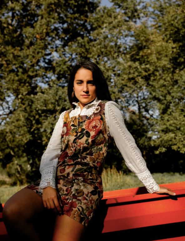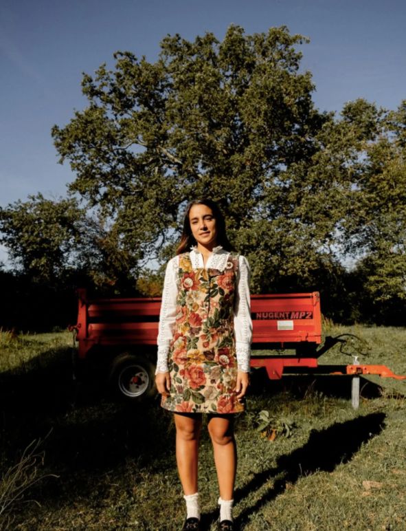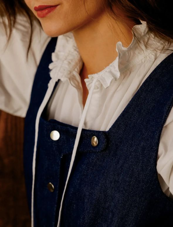 The pure line of the Alice dress highlights this puffed sleeve at the top and tightened at the bottom with a small box pleat.