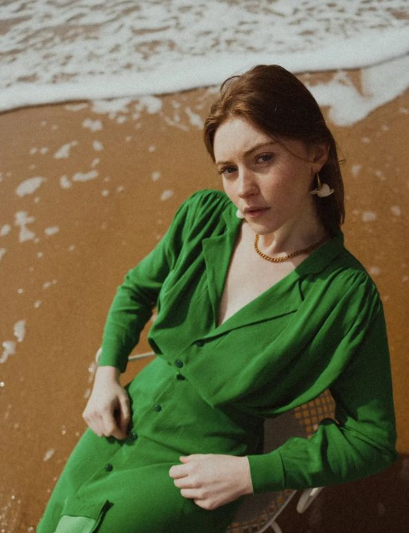 The pure line of the Alice dress highlights this puffed sleeve at the top and tightened at the bottom with a small box pleat.