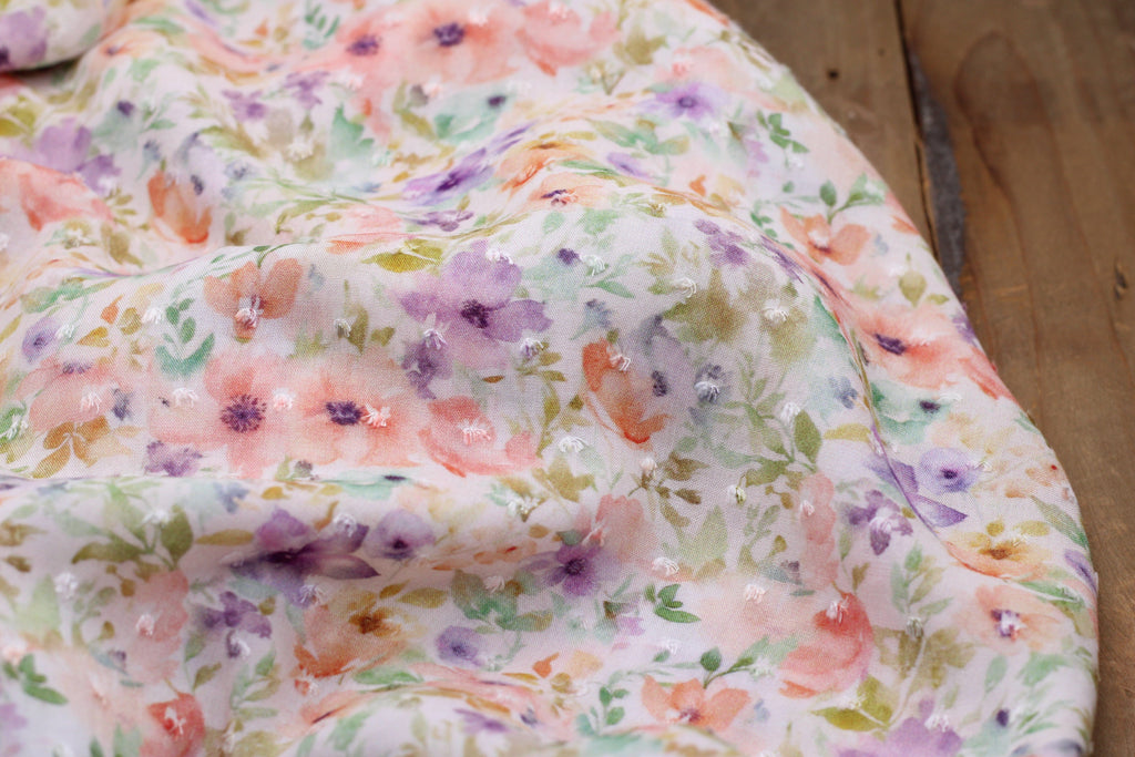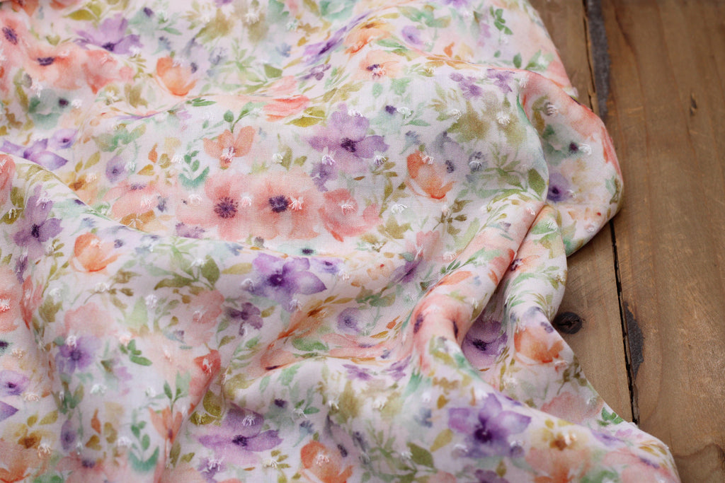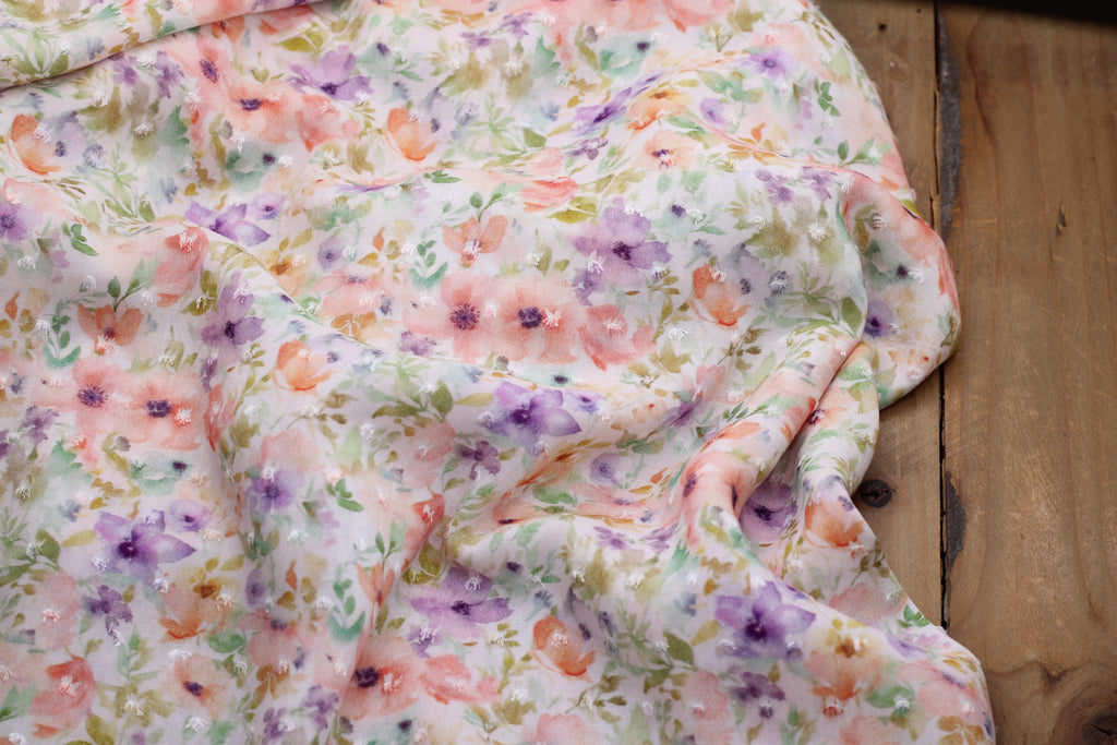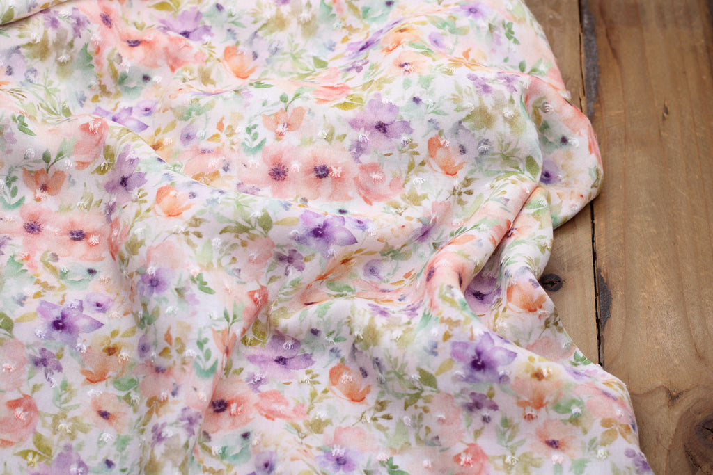 Tissu Viscose plumetis fleuri de type voile