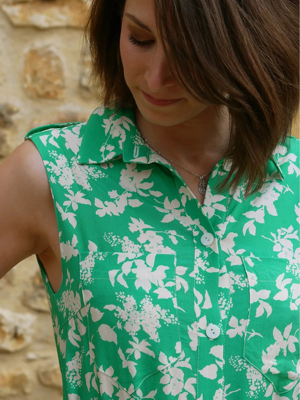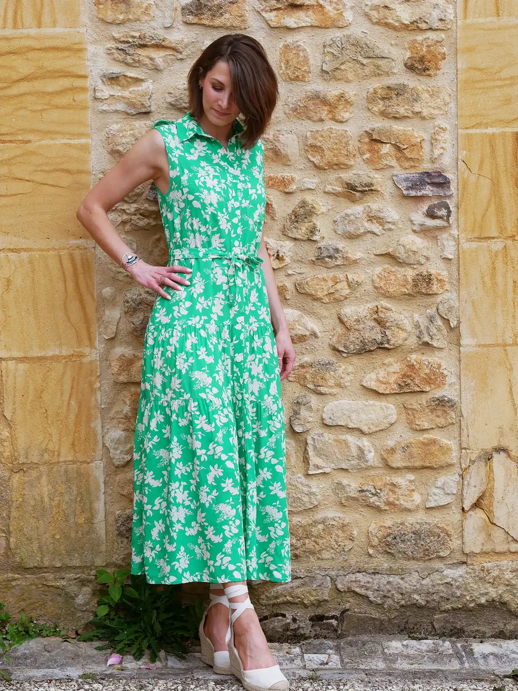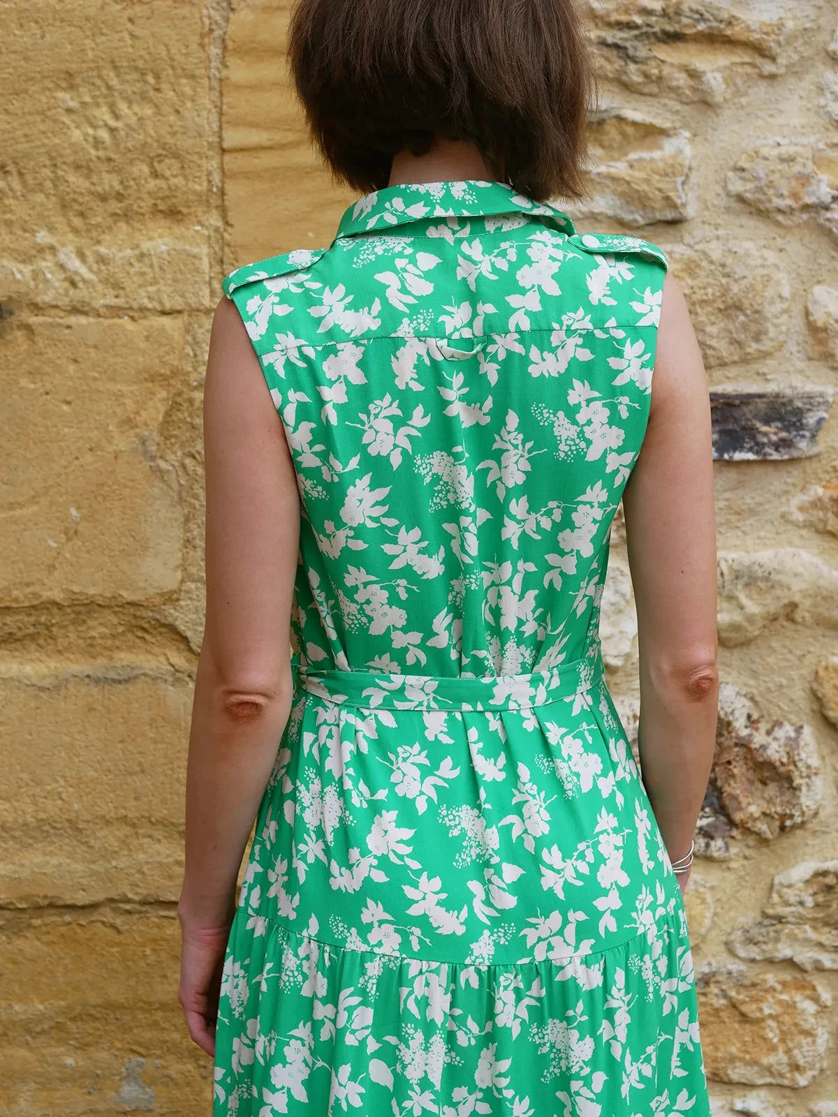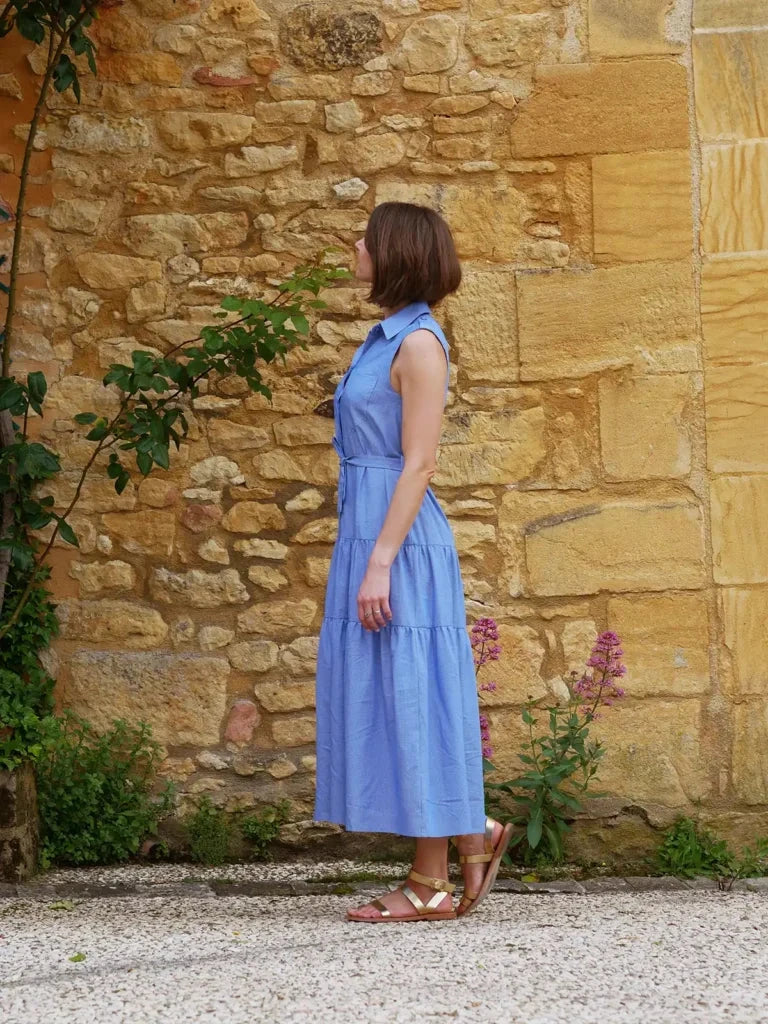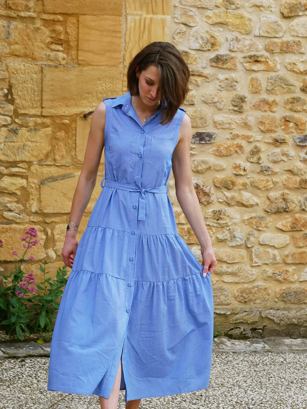 Oria c’est la robe féminine et bohème idéale pour les longues journées d’été. Elle se caractérise par un buste chemisier sans manches avec patte de boutonnage, col et pied de col; ainsi que deux poches plaquées poitrine. Le buste finissant aux hanches se prolonge de deux pans de jupe froncés. Sa ceinture à nouer marque la taille. Ses petits détails : des rabats aux épaules boutonnés, un passant dos qui rappelle la chemise classique et des passants côtés pour maintenir la ceinture. Oria mélange les genres avec un haut plutôt classique et un bas vaporeux. Elle peut être cousue dans des tissus plus ou moins fluides selon le rendu souhaité.