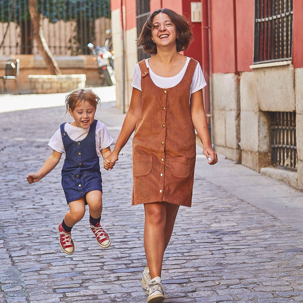 Tissu 1 : toile (coton/lin), gabardine, jean, velours/milleraies, lainage, jacquard. La robe peut aussi être faite en sweat/French Terry. Tissu 2 (pour enformes) : cotonnade légère (popeline de coton ou chambray).