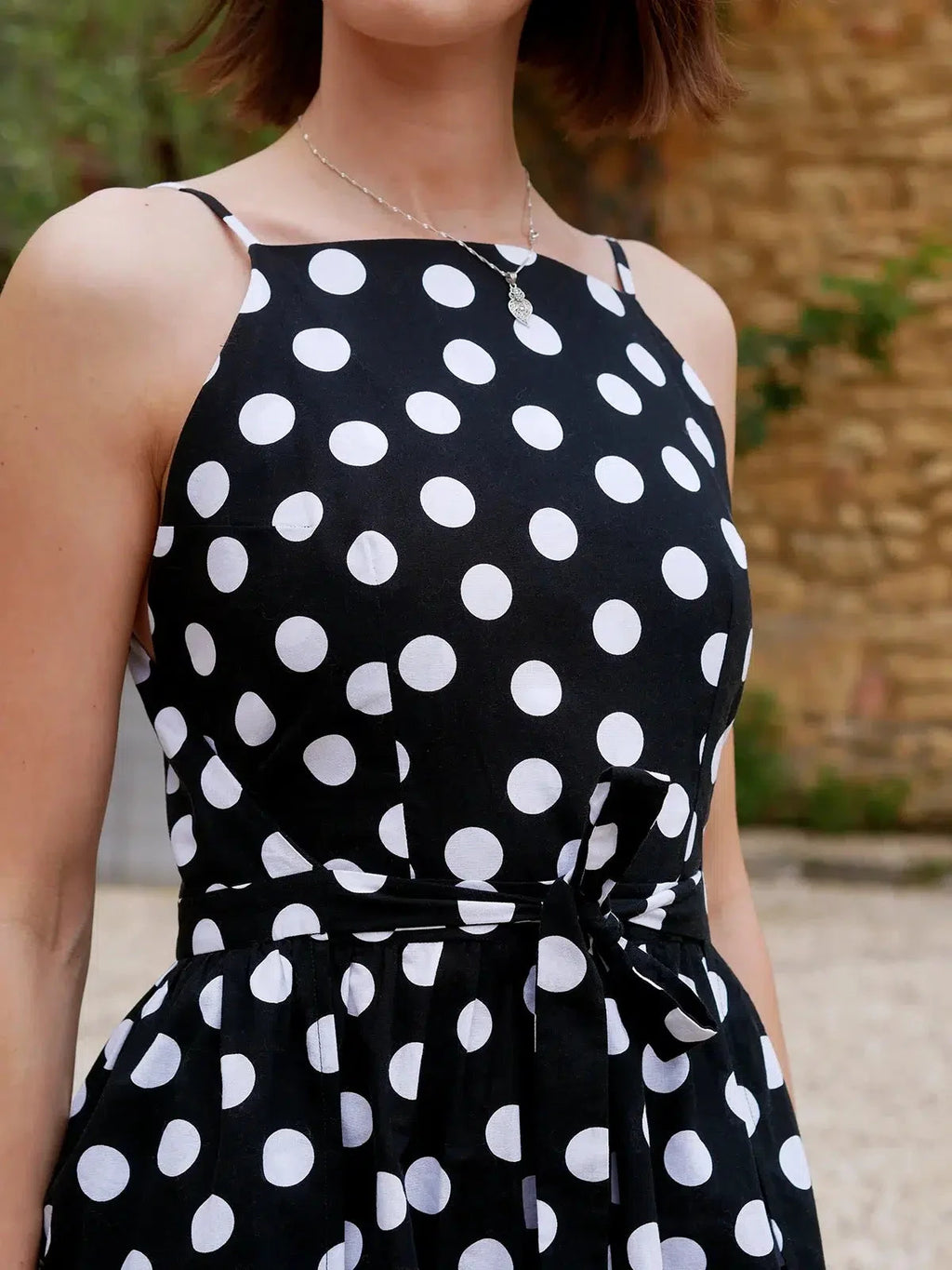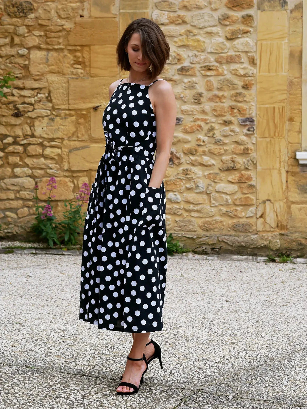 Oria c’est la robe féminine et bohème idéale pour les longues journées d’été. Elle se caractérise par un buste chemisier sans manches avec patte de boutonnage, col et pied de col; ainsi que deux poches plaquées poitrine. Le buste finissant aux hanches se prolonge de deux pans de jupe froncés. Sa ceinture à nouer marque la taille. Ses petits détails : des rabats aux épaules boutonnés, un passant dos qui rappelle la chemise classique et des passants côtés pour maintenir la ceinture. Oria mélange les genres avec un haut plutôt classique et un bas vaporeux. Elle peut être cousue dans des tissus plus ou moins fluides selon le rendu souhaité.