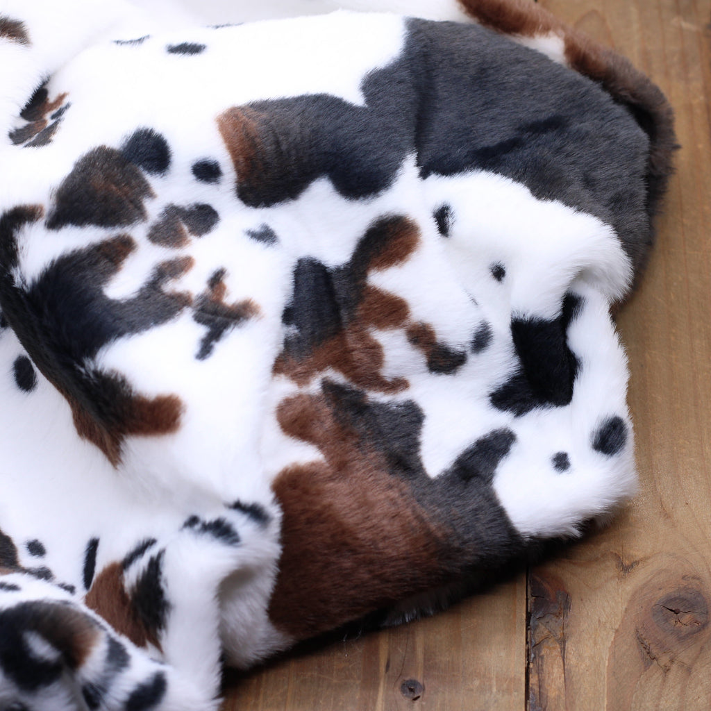 Description : Tissu fausse fourrure VACHE, souple chaud et très doux, parfait pour vos vestes, gilets berger ou manteaux...et meme votre décoration d'interieur.