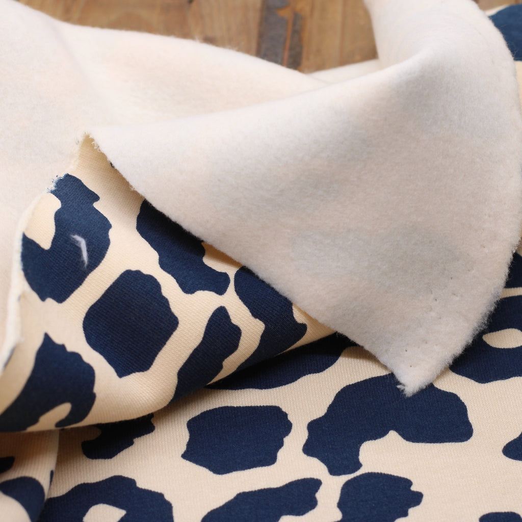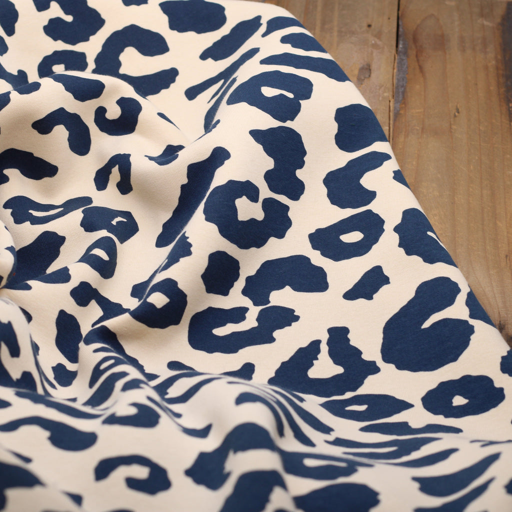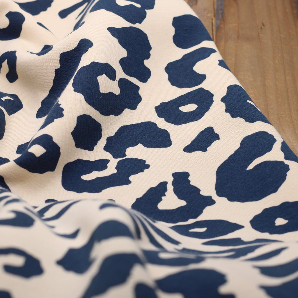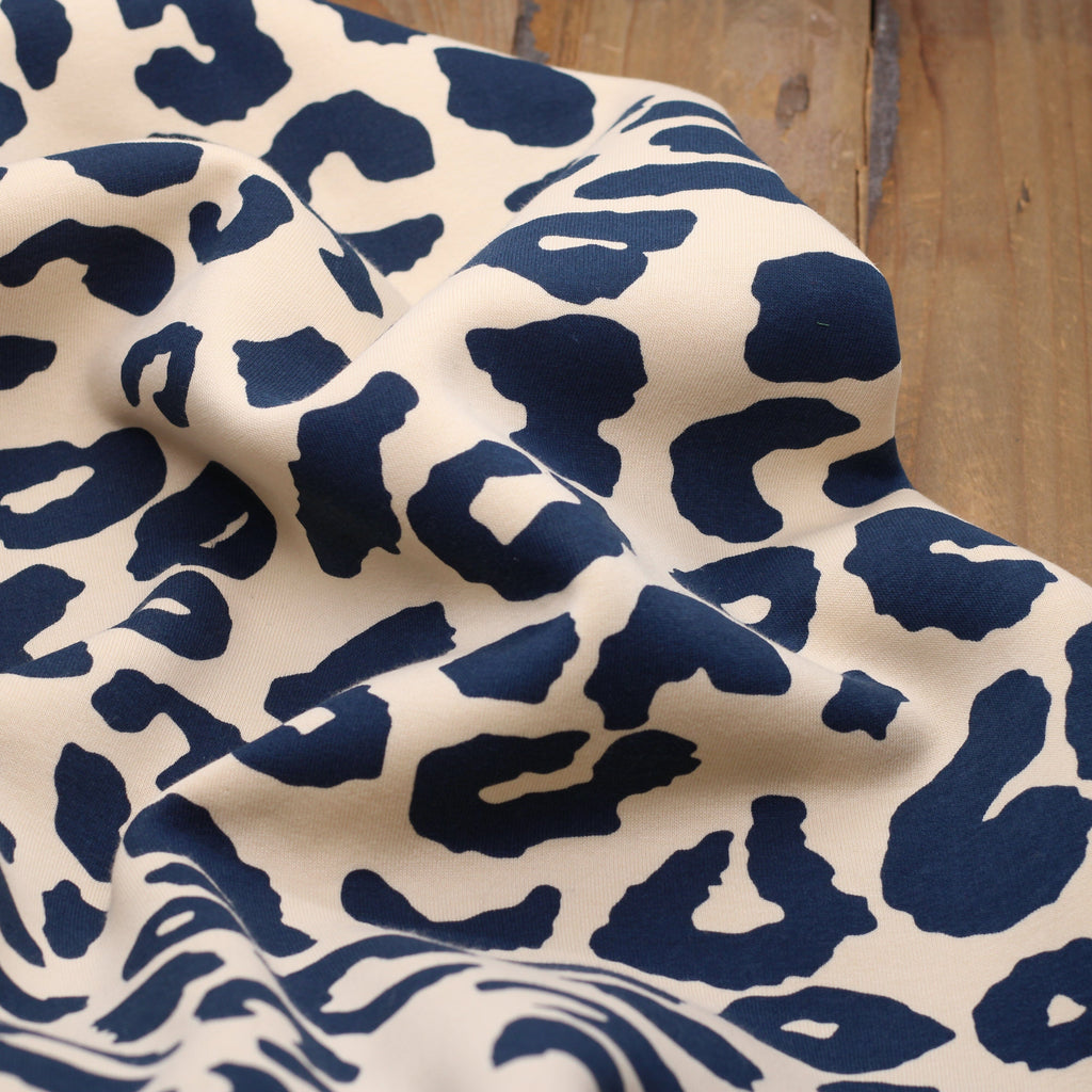 Tissu French Terry Gratté BIO - LEOPOARD - Marine / Ecru Vendu x10cm)