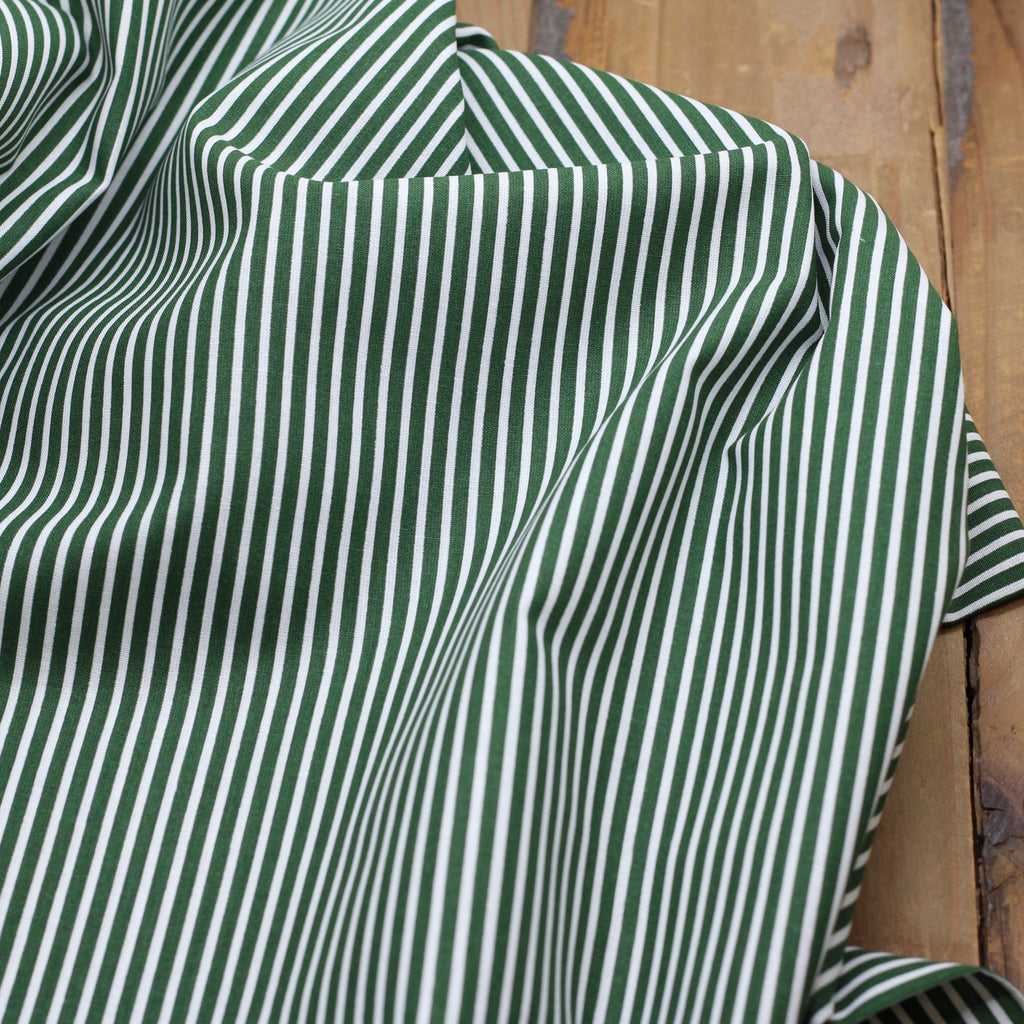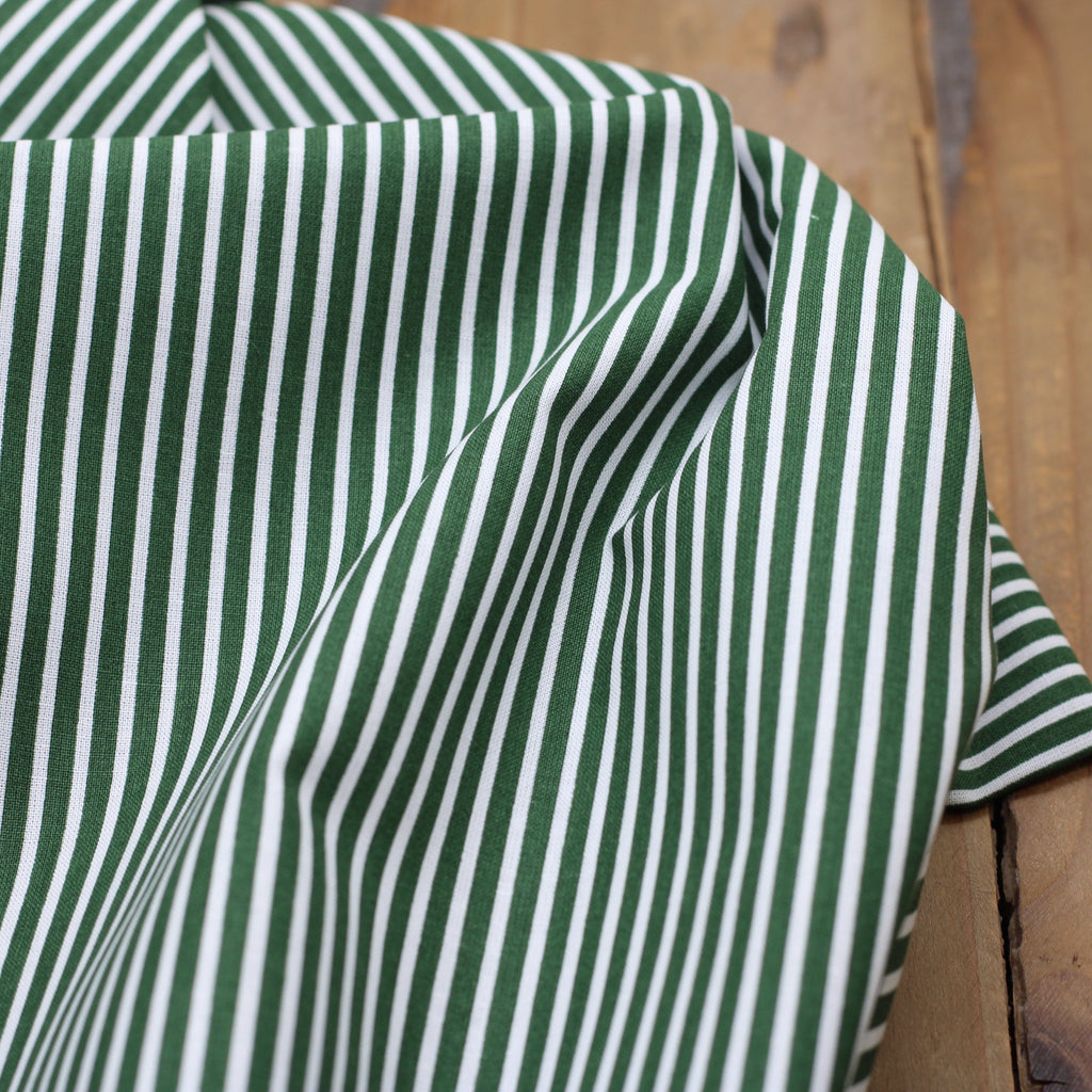 Tissu popeline de coton RAYURES - Vert foret (Vendu x10cm)
