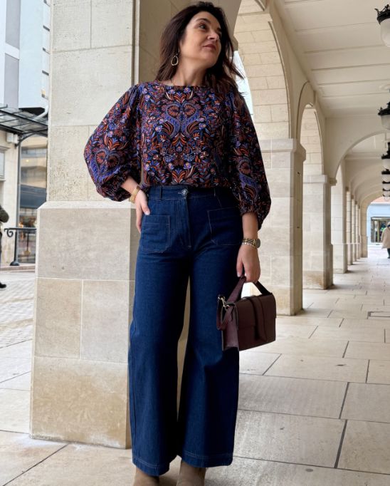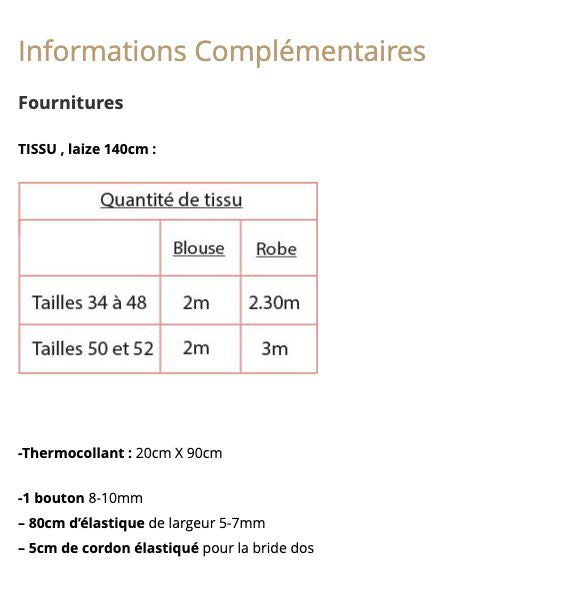 Il est adapté à tous types de tissus souples ou avec un peu de tenue pour mettre en valeur le bouffant des manches : satin, lin, sergé, viscose, twill,