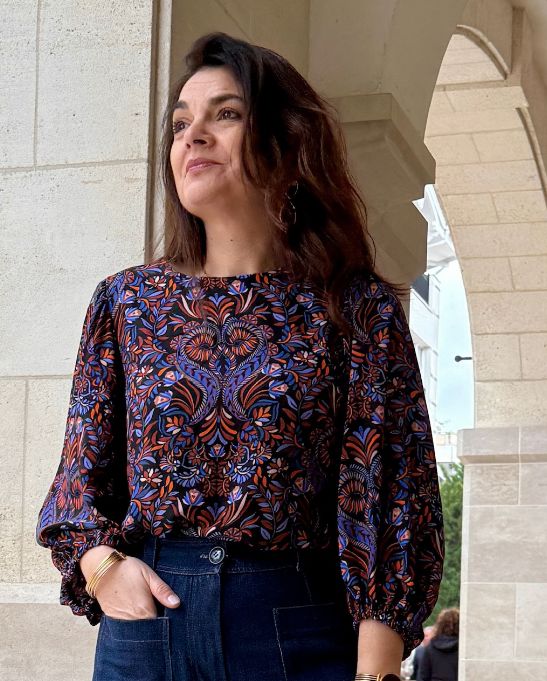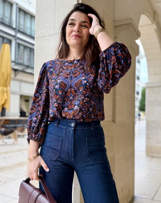 Mais la véritable signature de Dahlia réside dans sa manche 3/4 maxi : un volume élégant, animé par un effet plongeant dans le dos, qui crée une allure moderne et vivante.