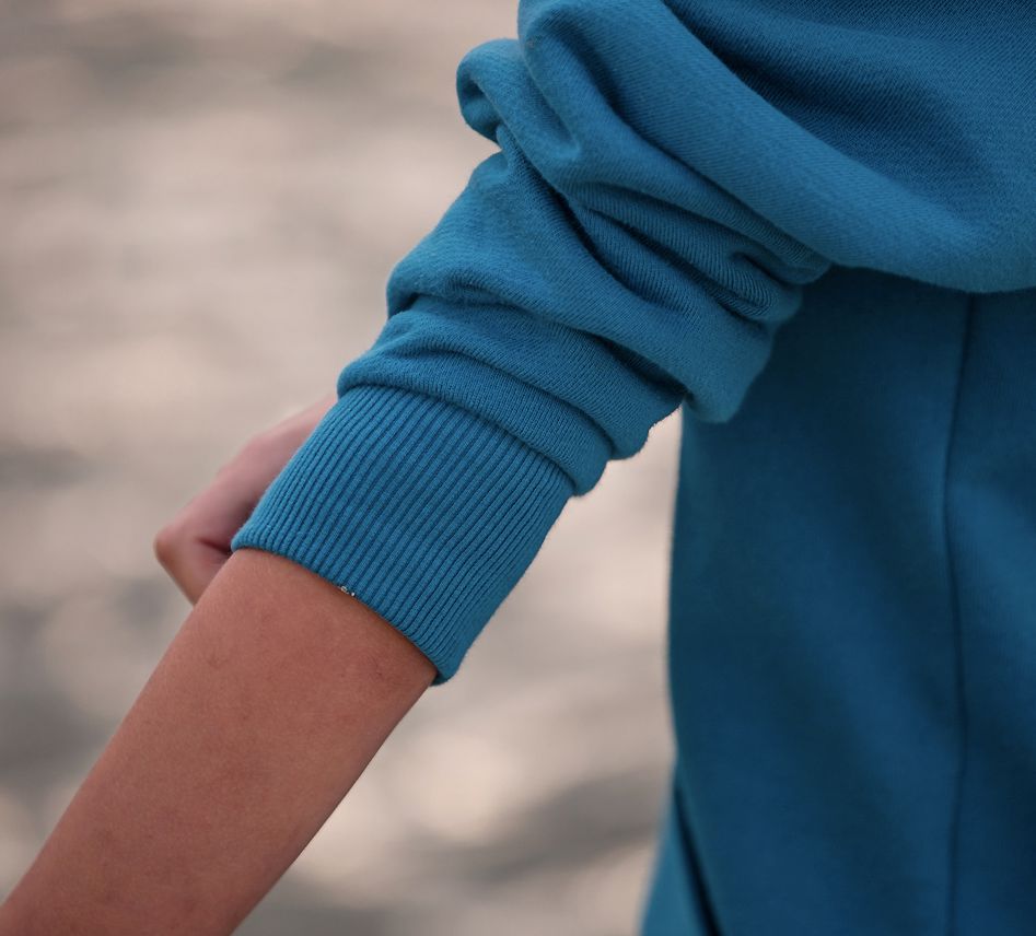 Utiliser/couper les bords côtes à une largeur de 75% par rapport à la largeur du vêtement.