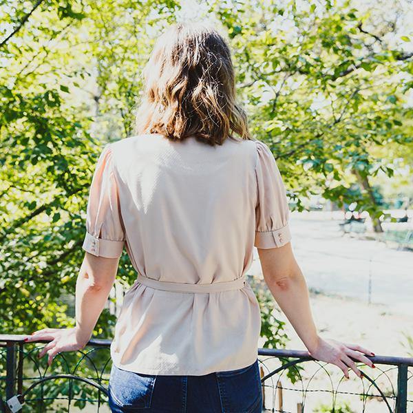 Alma est une blouse cache-cœur nouée à la taille, très facile à porter au quotidien ou pour une occasion. 6 options de manches vous sont proposées pour créer des blouses aux styles très variés :