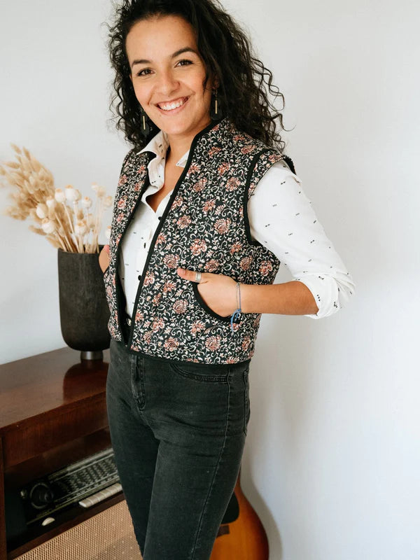 Découvrez Anouck, un gilet sans manches à l'allure bohème chic proposant plusieurs variantes, à porter sur un pull ou une blouse. Vous n'avez jamais matelassé?  (niveau estimé : 1,5/5).