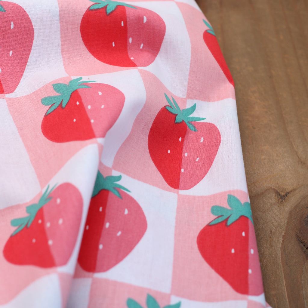 Description : Tissu coton MARIGUETTE fraises - Blanc