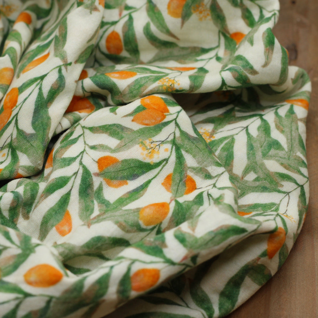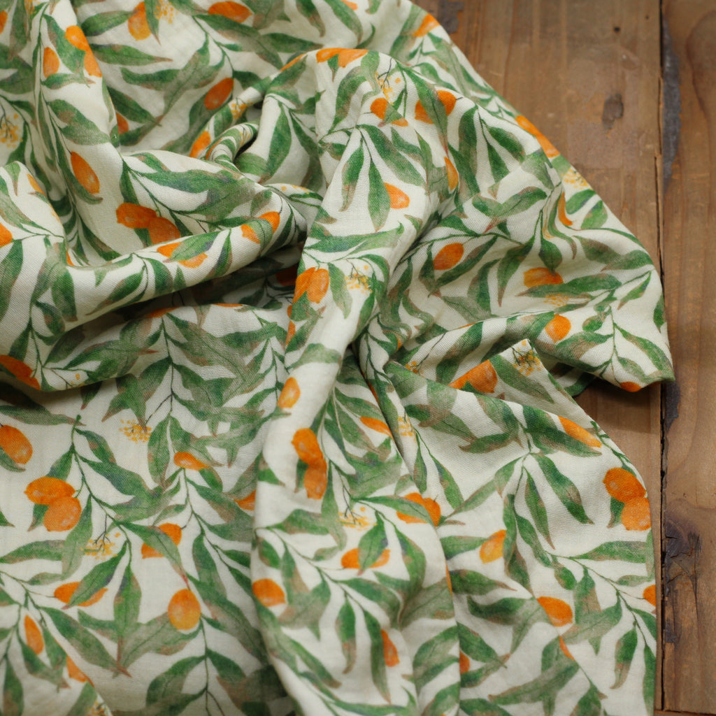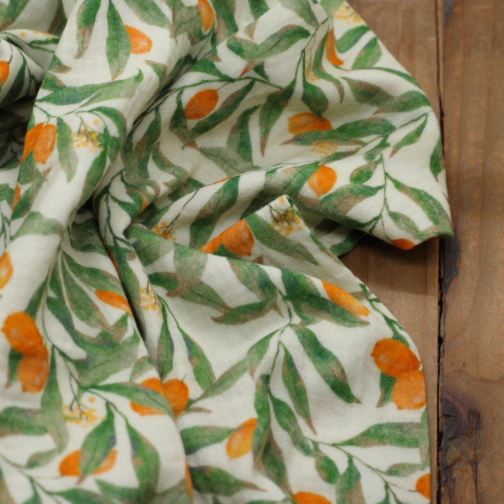 Double gaze de coton - ORANGE FLOWERS- Ecru