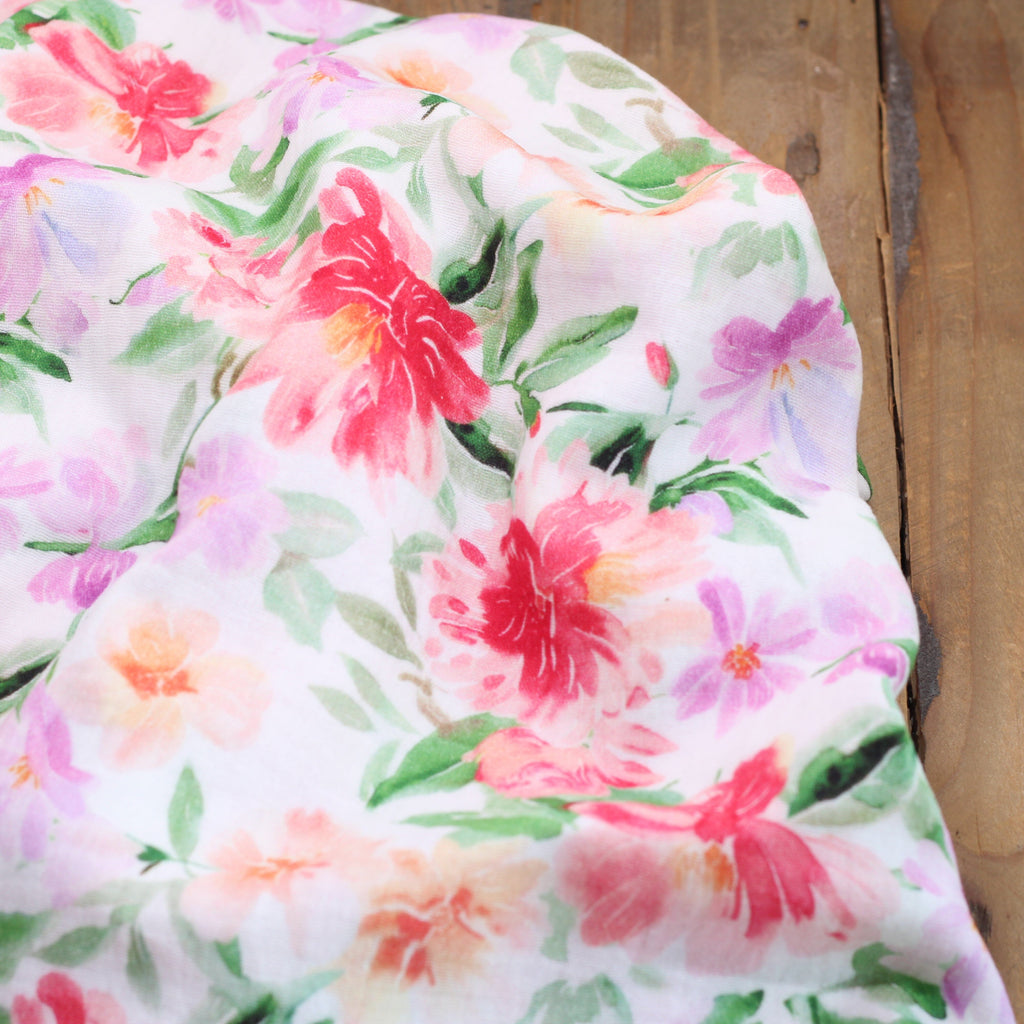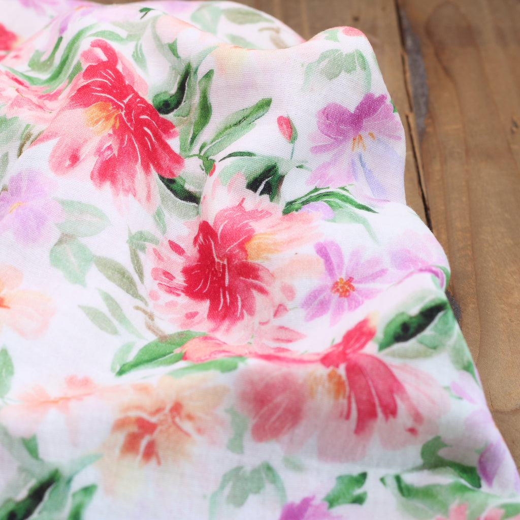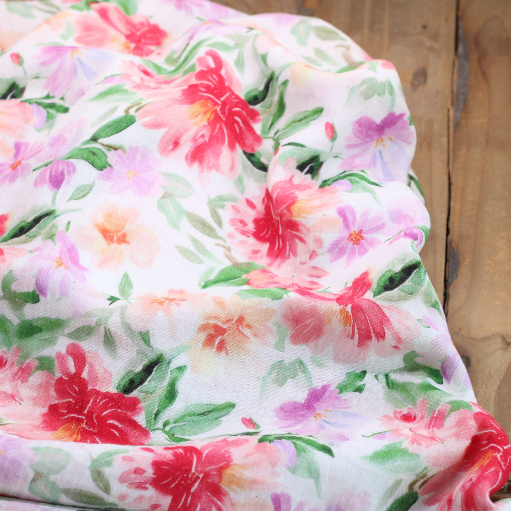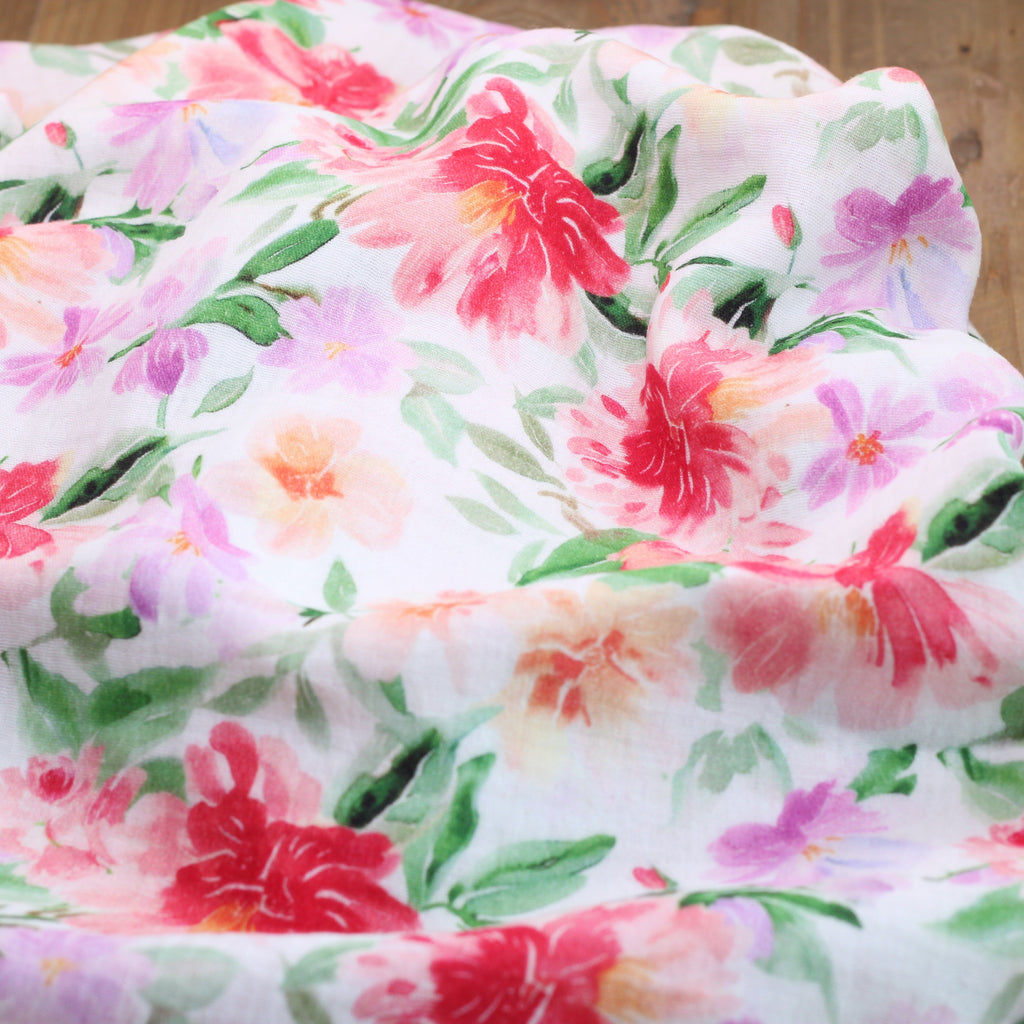 Double gaze de coton - RED FLOWERS- Blanc