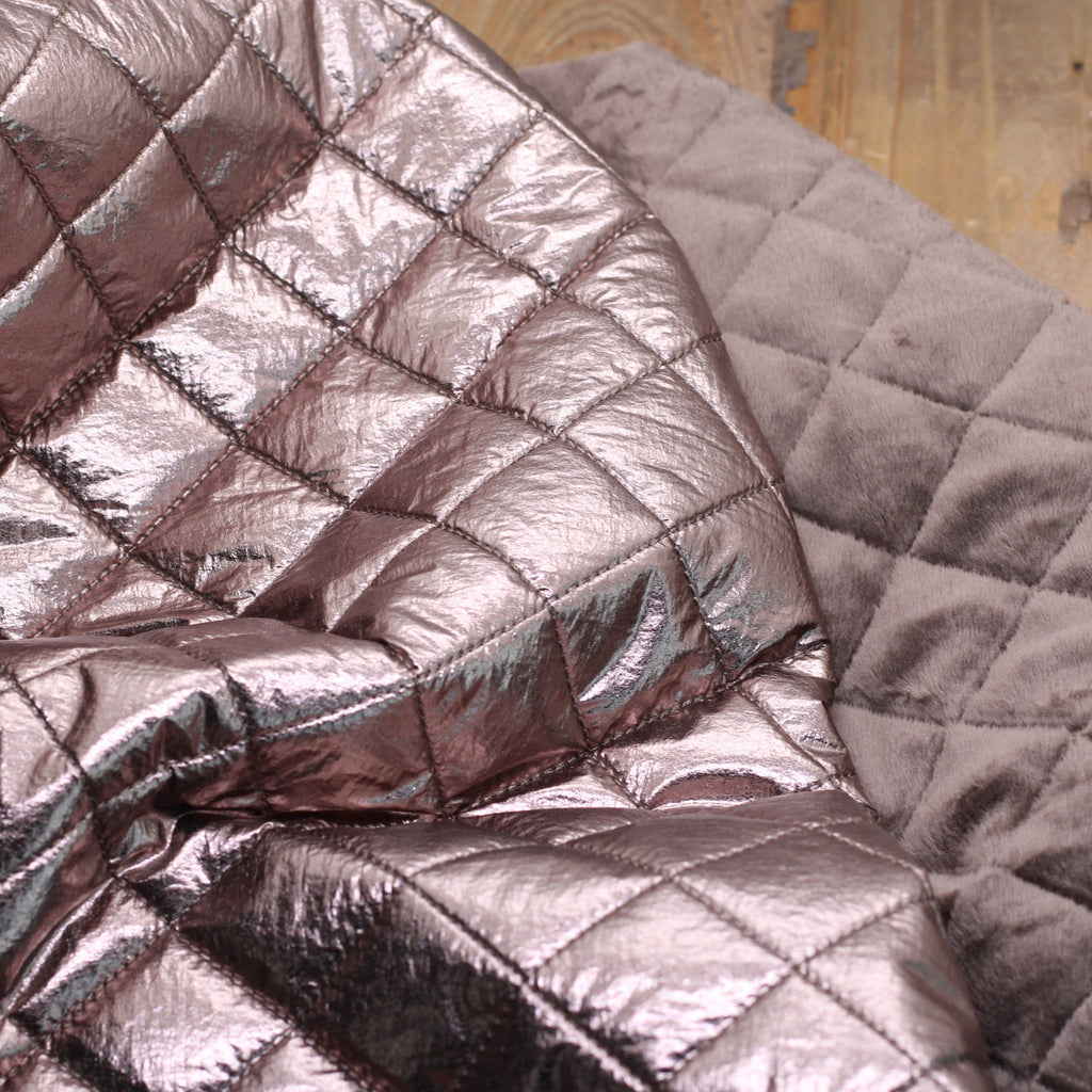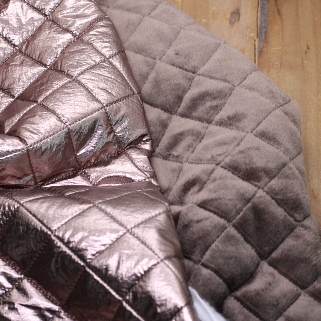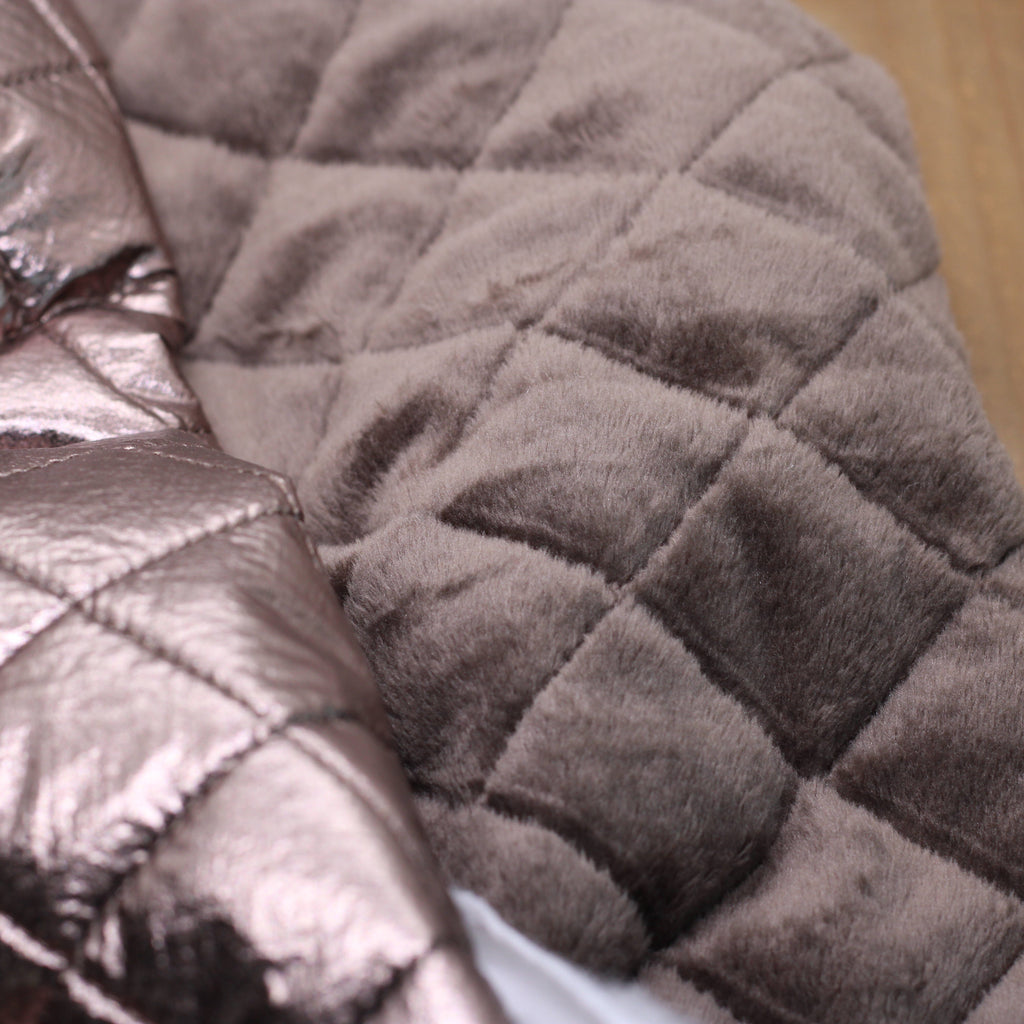 Description : Tissu doudoune matelassé doublé fausse fourrure BRONZE
