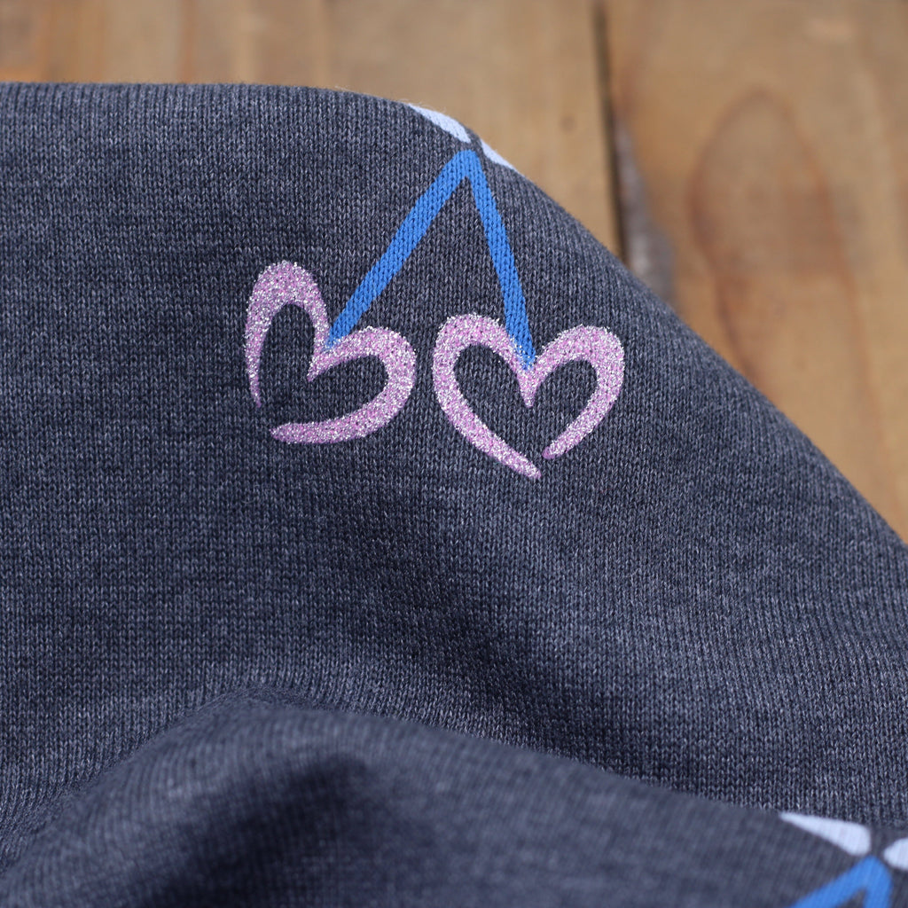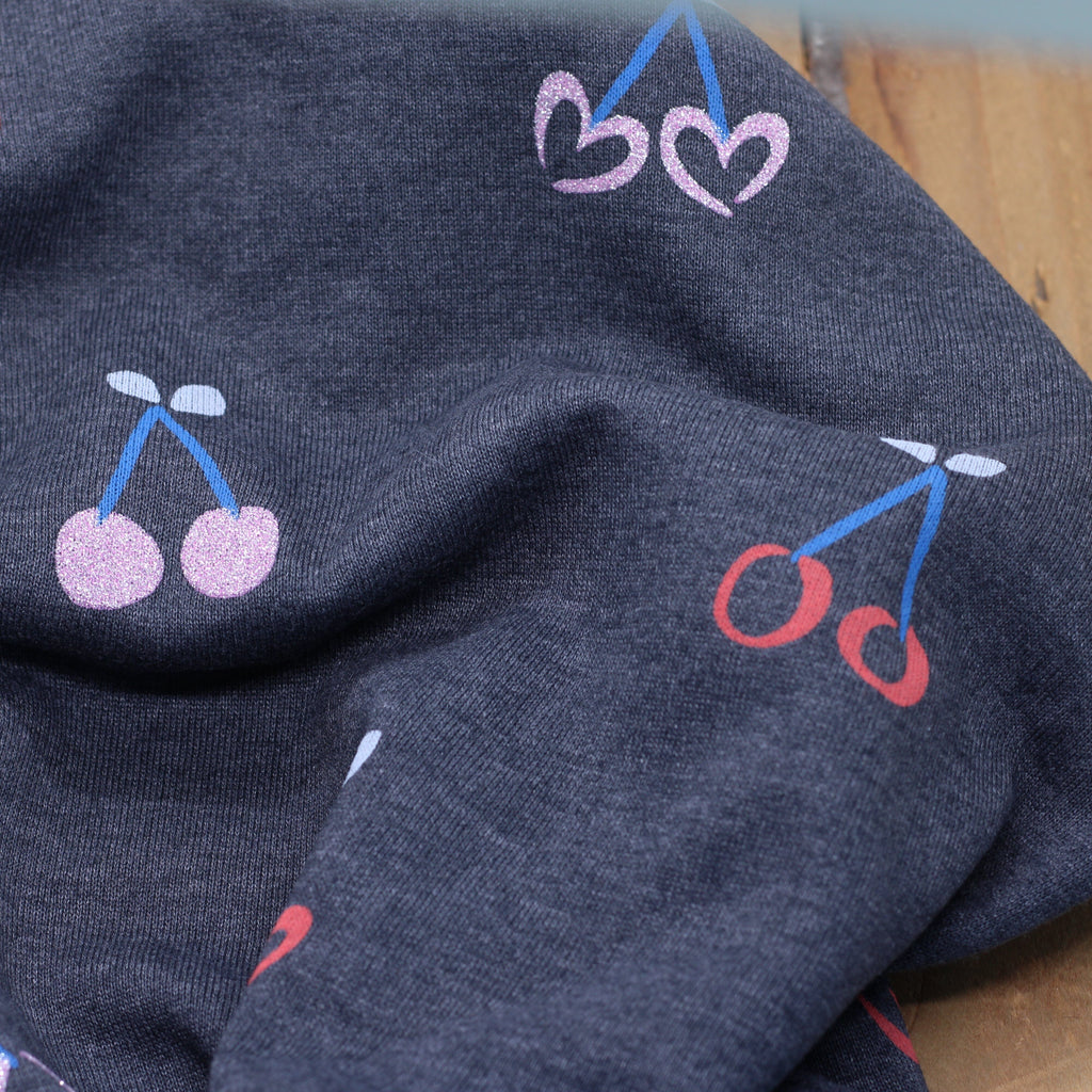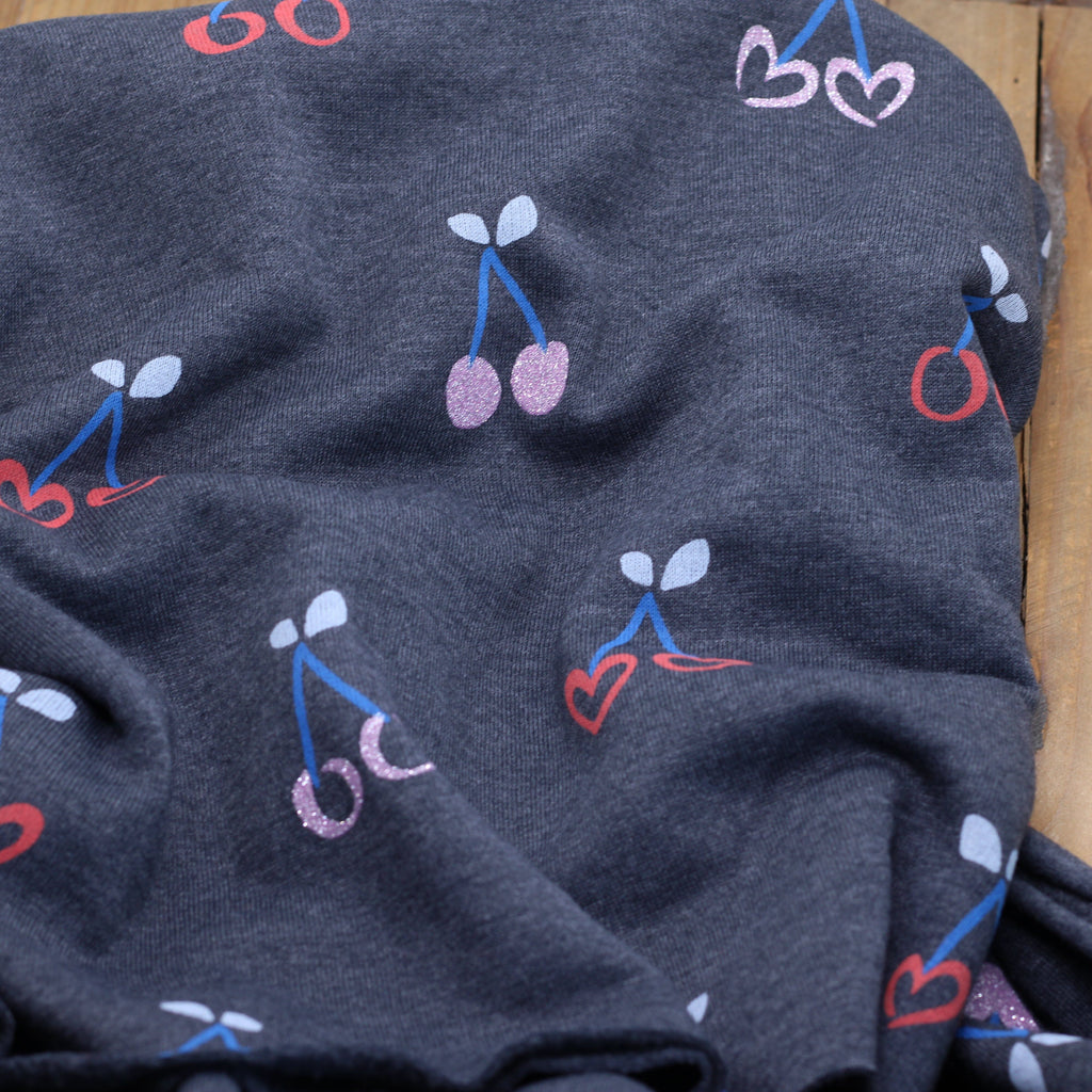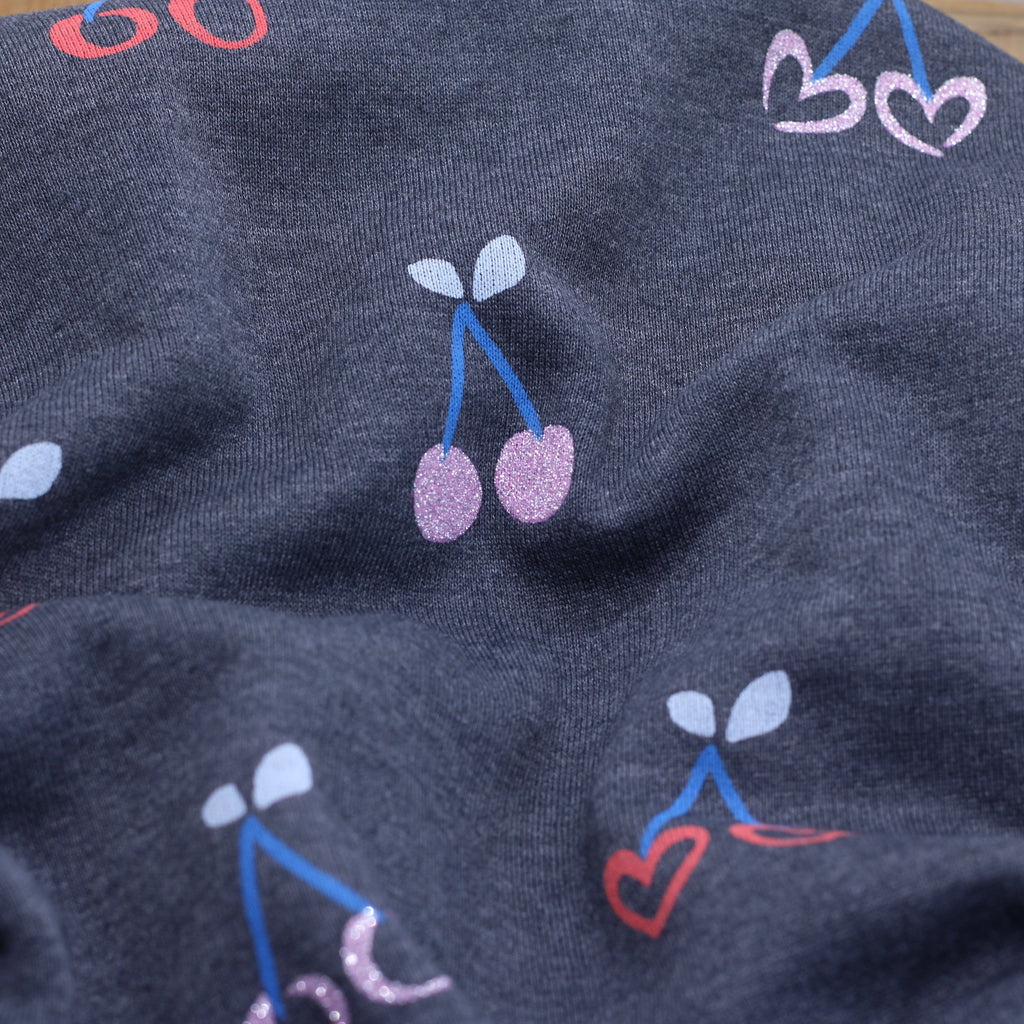 Tissu French Terry - CHERRIE HEART Glitter- Gris foncé chiné
