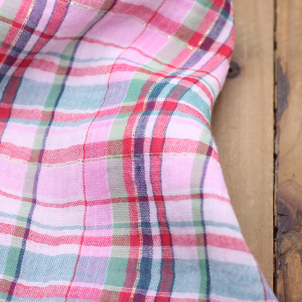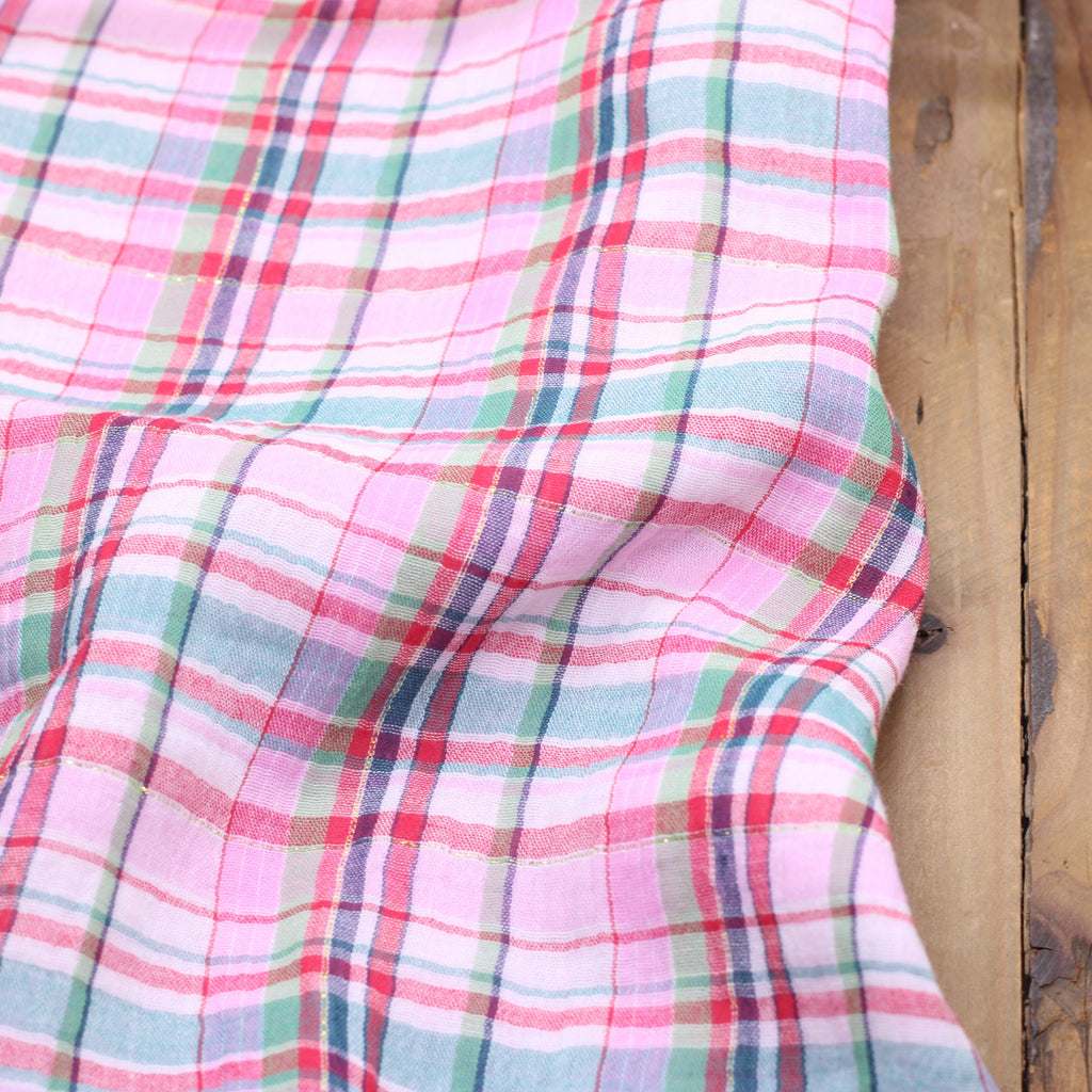 Tissu gaze de coton rayé - ROSE ET LUREX ARGENT