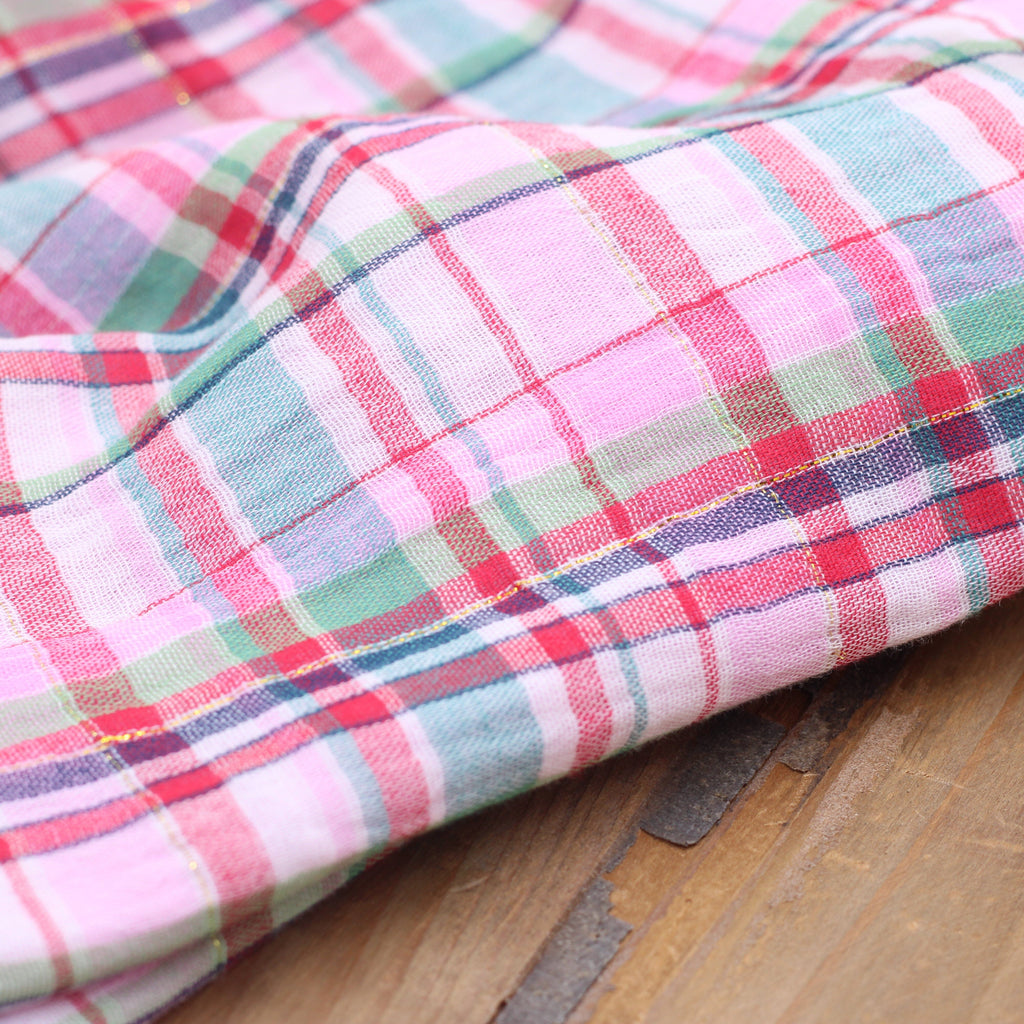 Très joli tissu coton double gaze à rayures vieux rose et vert