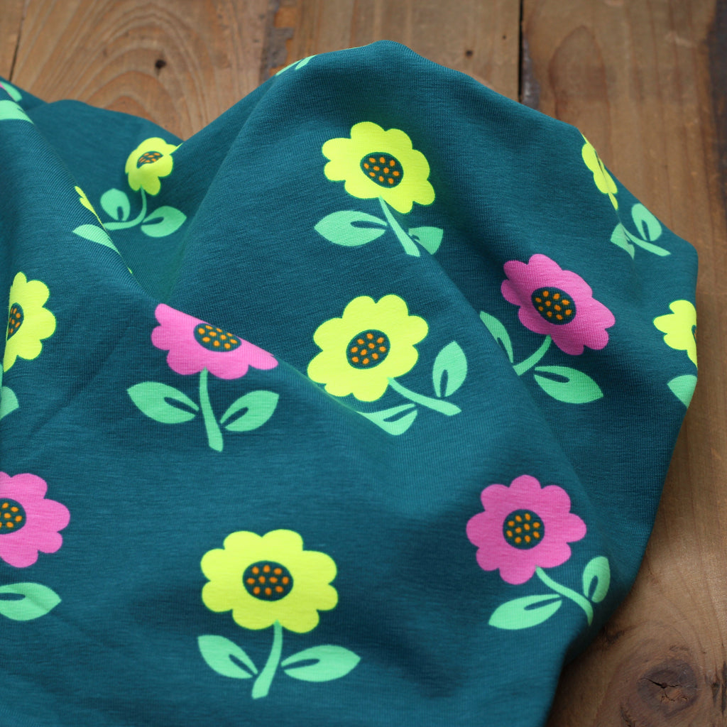 Tissu Jersey de coton - NEON FLOWERS - Vert - POPPY DESIGNED (Vendu x10cm)