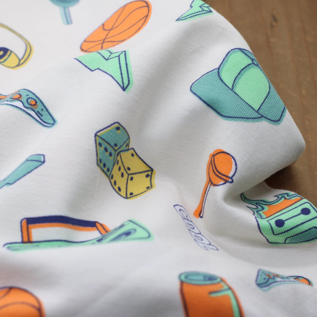 Description : Tissu Jersey de coton  imprimé sur fond beige.