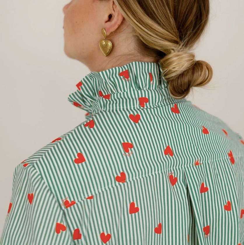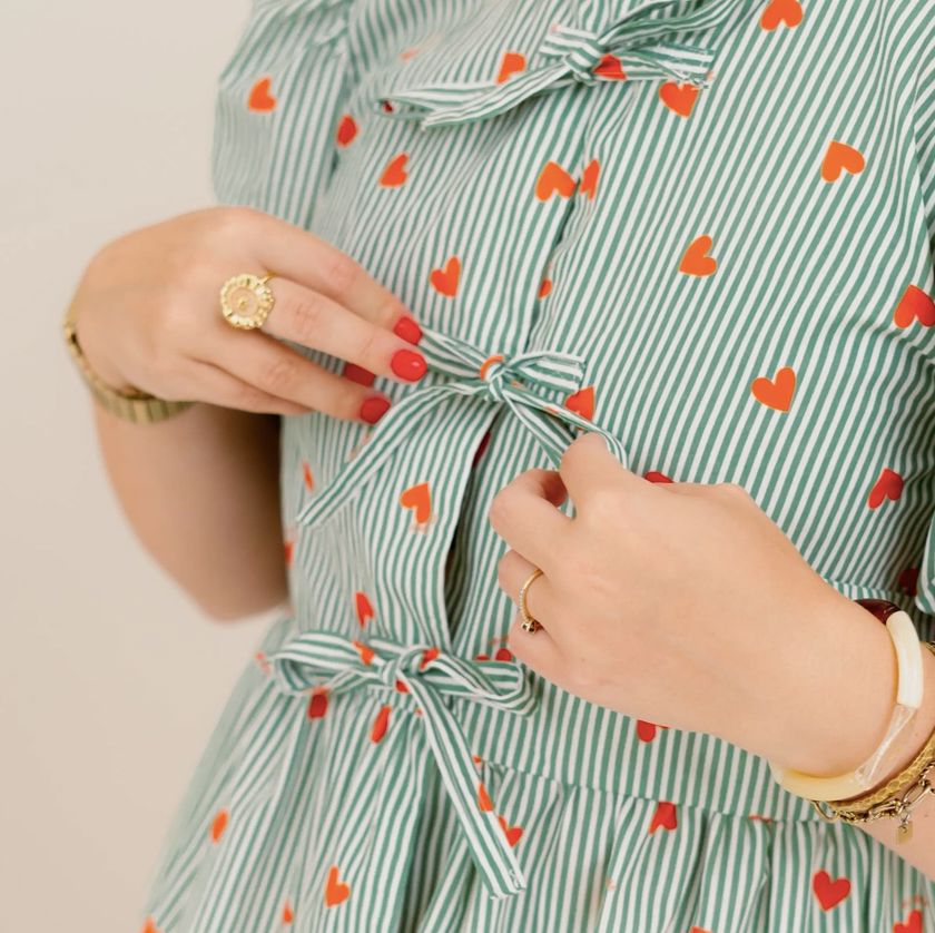 Description : De jolis petits coeurs rouges orangés imprimés sur rayures blanches et vertes