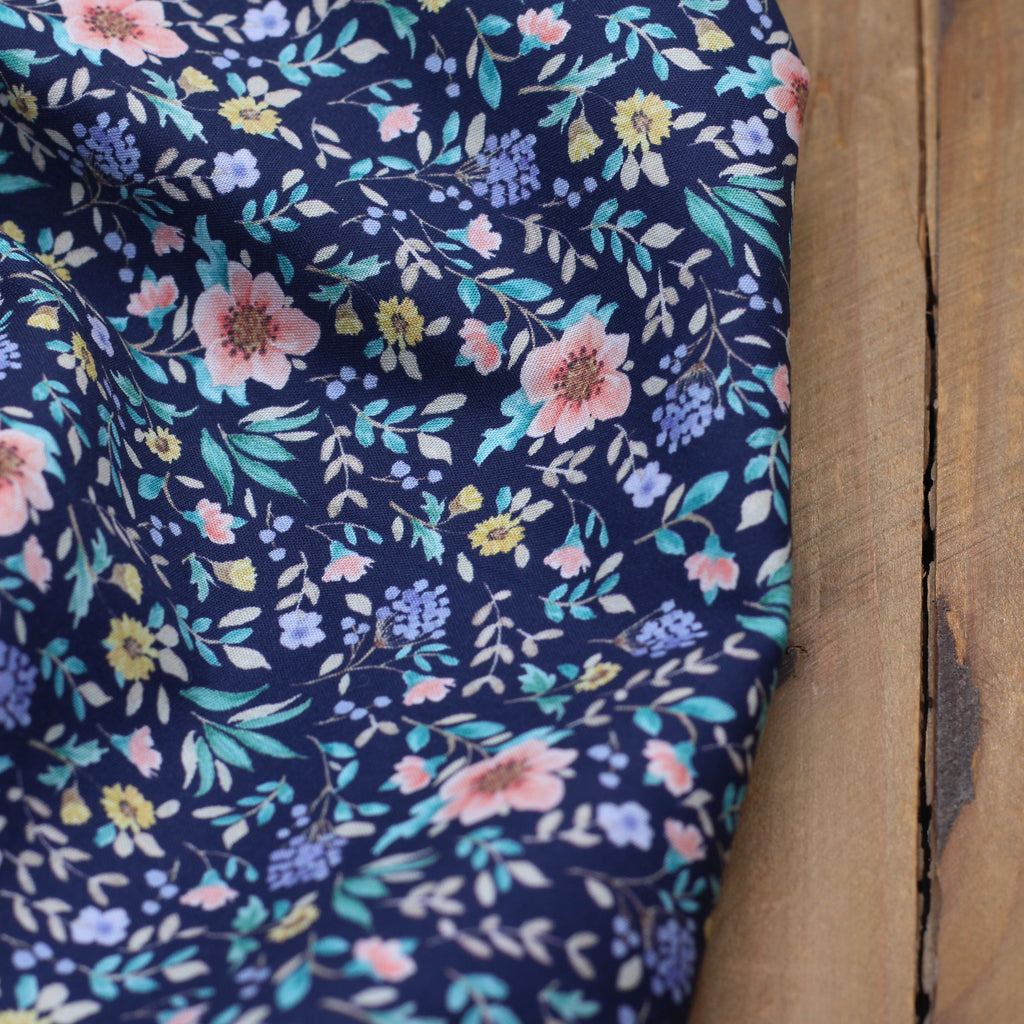 Tissu Popeline de coton - LEONORE- Bleu marine (Vendu x10cm)