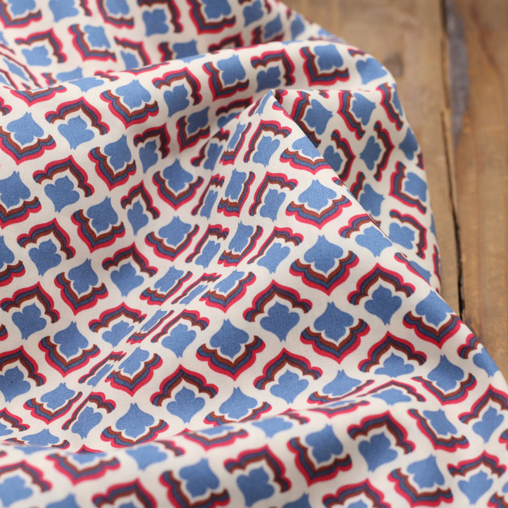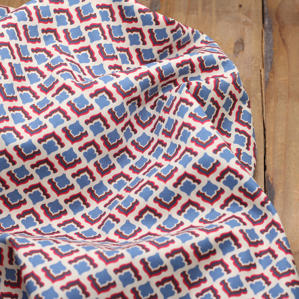 Tissu Popeline de coton - VINTAGE MINI FLOWERS - Bleu/rouge (Vendu x10cm)