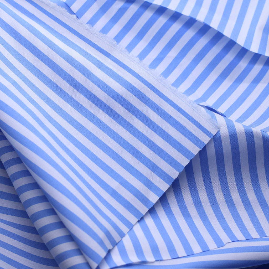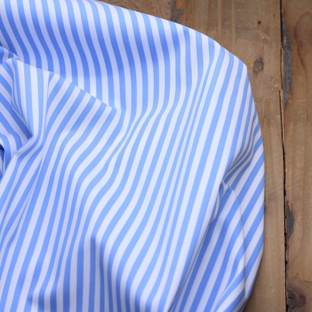 Tissu Satin de coton stretch - RAYE - Blanc/Bleu (Vendu x10cm)