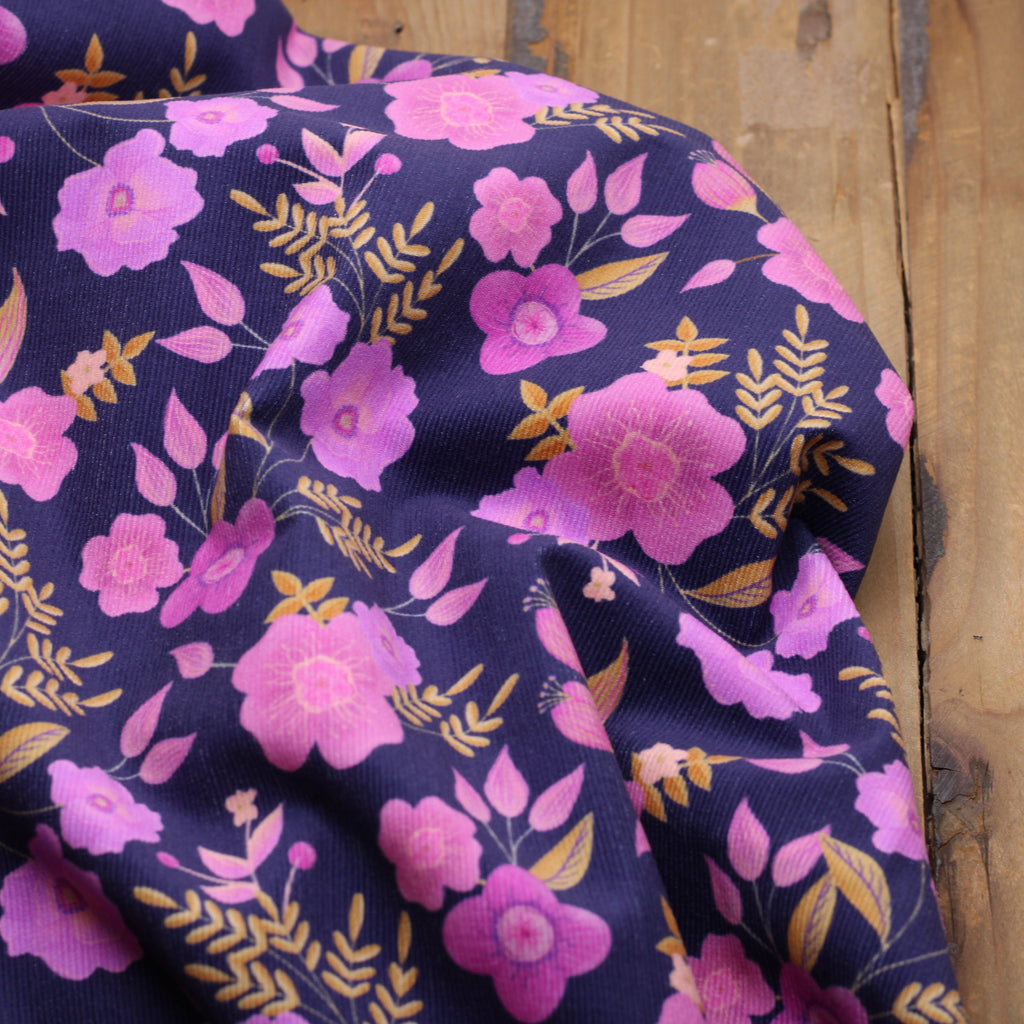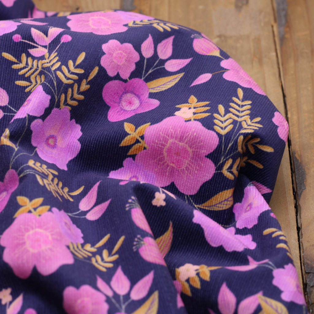 Tissu velours milleraies - VIOLET LOWERS - Bleu Marine
