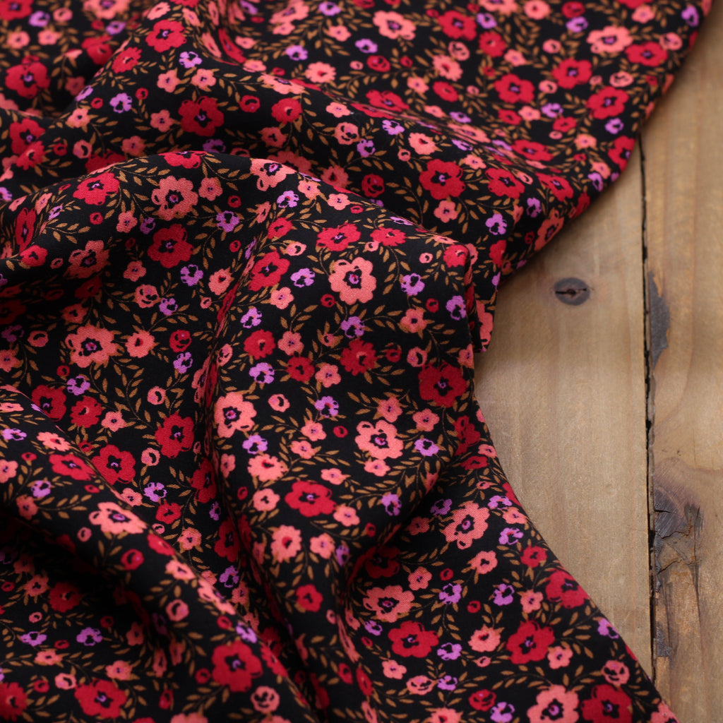 Tissu Viscose - FLEUR Noir