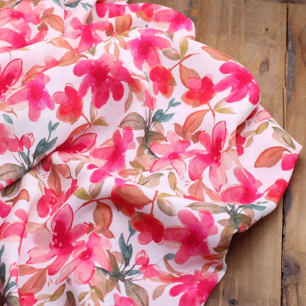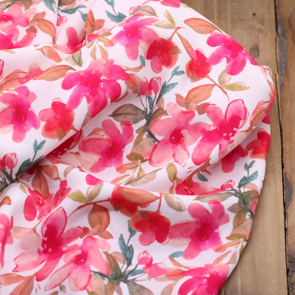 Fond : Motif fleuri rose fuchsia, vert foret, terracotta... sur fond blanc