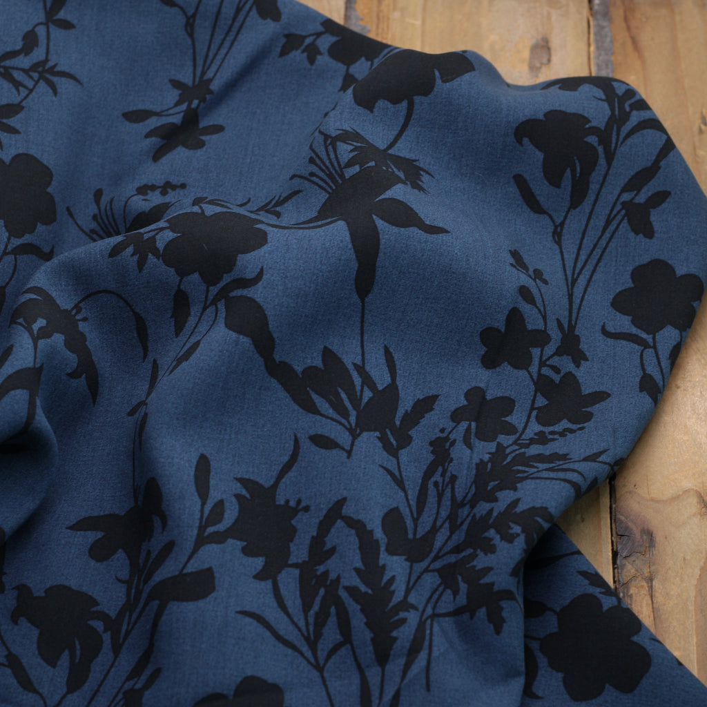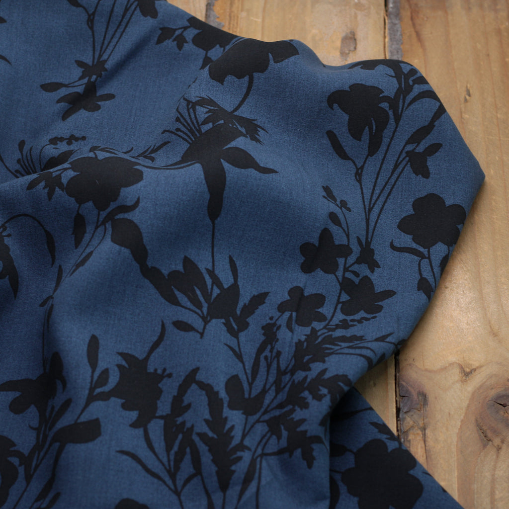Tissu Viscose Fleurie CLEO Bleu chiné