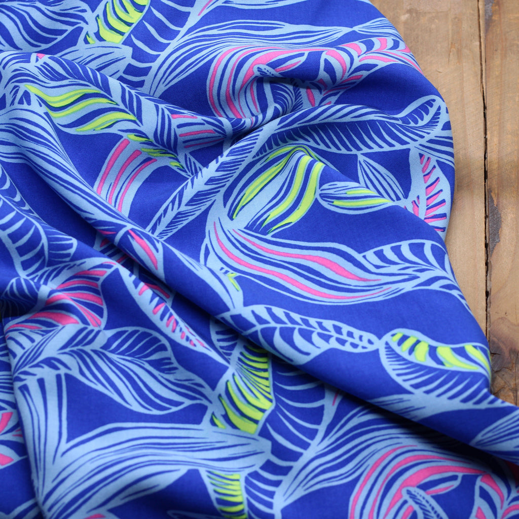Tissu Viscose leaves - Cobalt