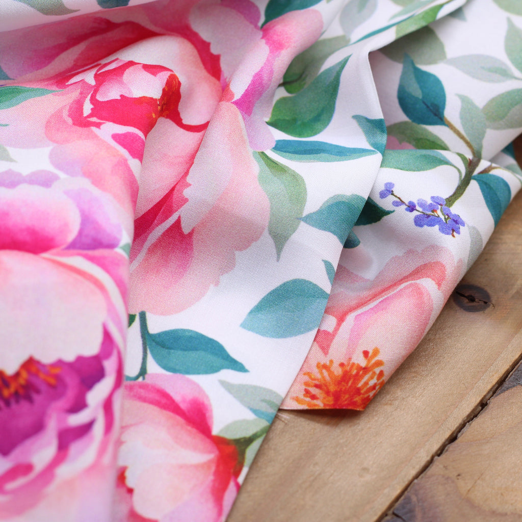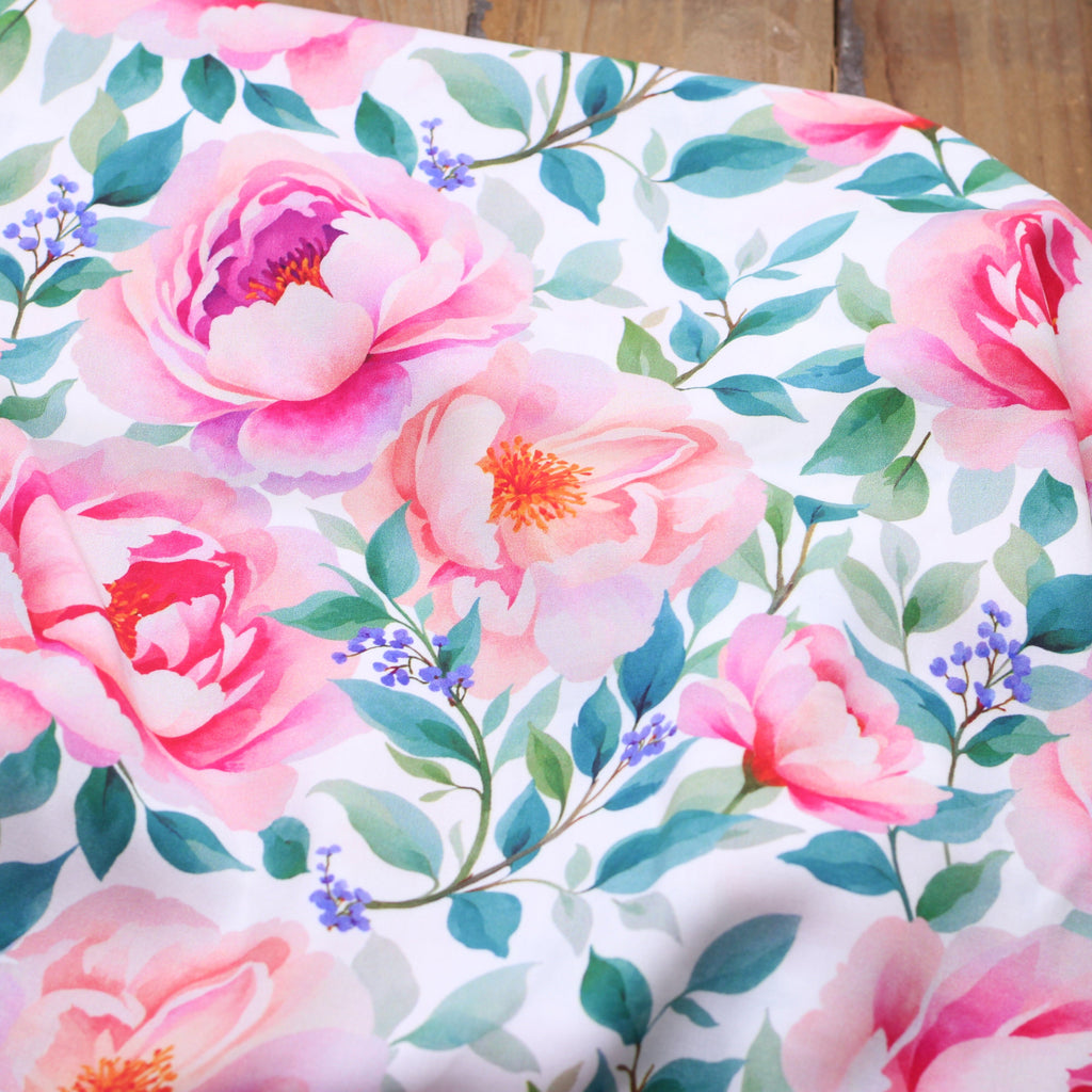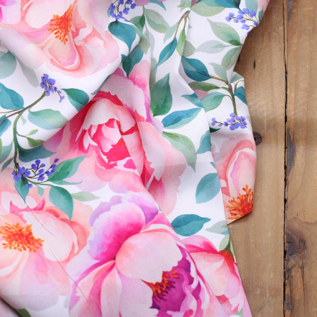 Tissu Viscose - FLOWERS ROSES Blanc
