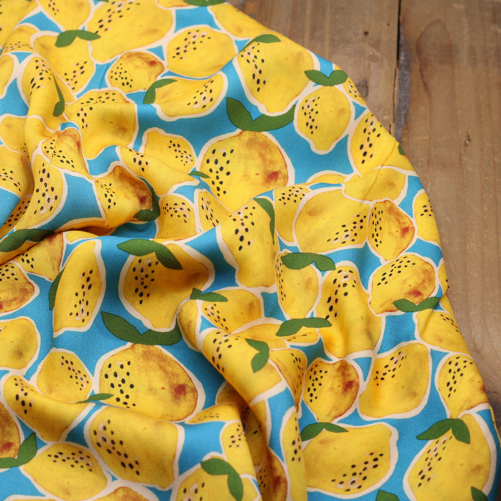 Tissu Viscose LEMON CITRONS - Bleu